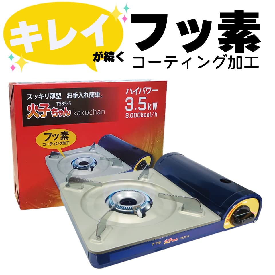 TTS 火子ちゃん カセットコンロ ガスボンベ 卓上コンロ フッ素加工 ネイビー TS35-5