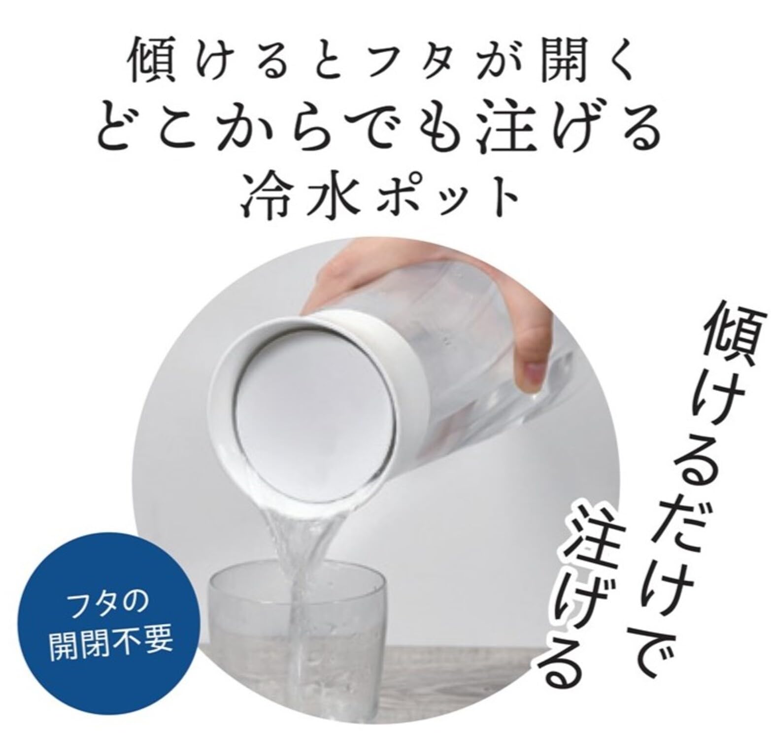 フタの開閉不要!傾けると自動でフタが開く冷水ポットです