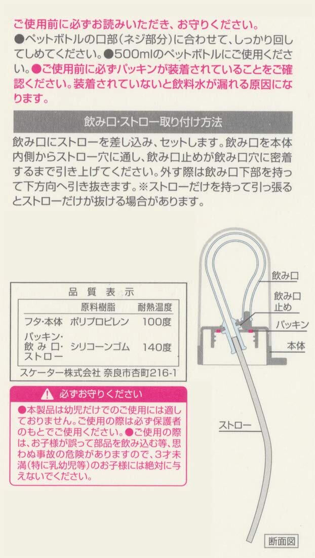 スケーター(Skater) ペットボトル ロングストロー 寝たままで飲みやすい 500ml用 フタ付 PSHC10-A