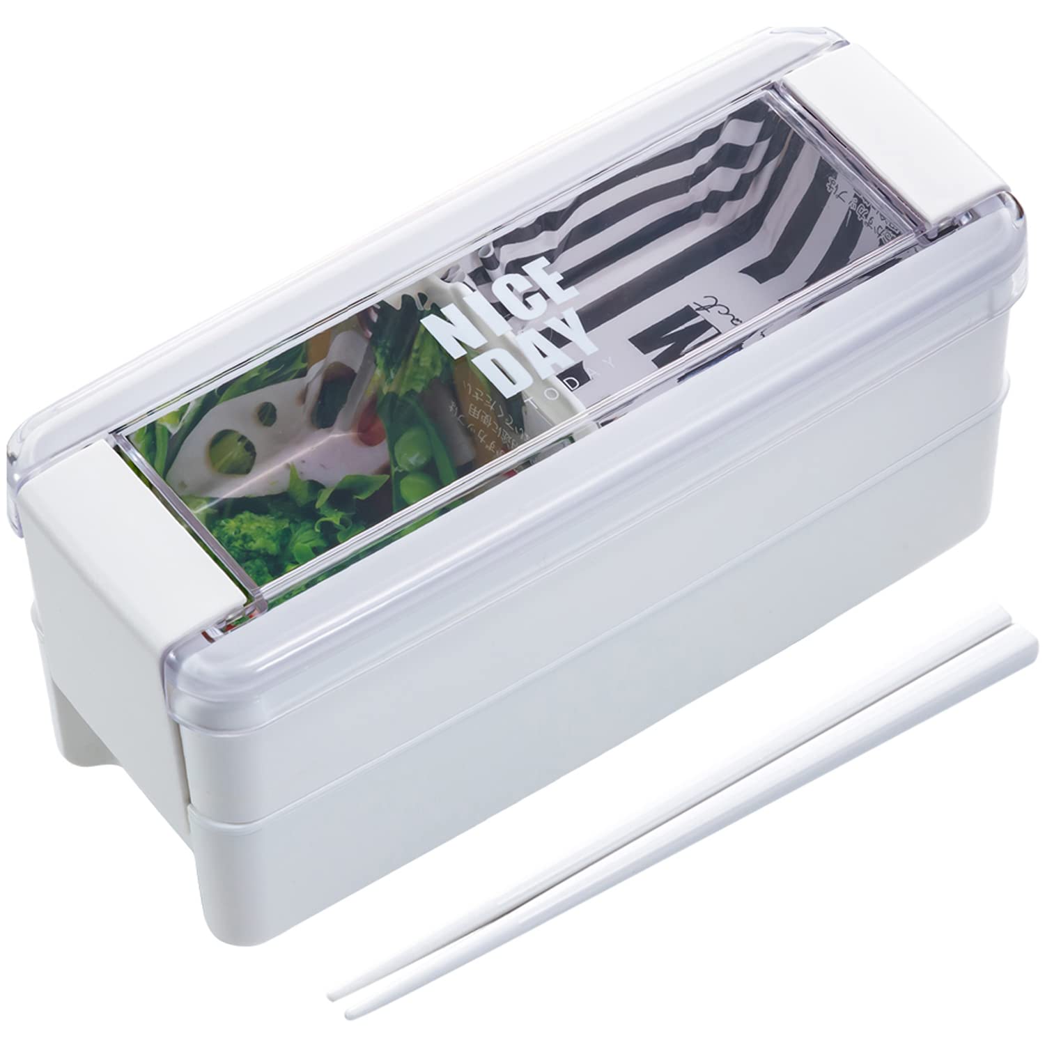 岩崎工業 弁当箱 イージーケア ランチボックス 2段(箸つき) 680ml ホワイト フタ・パッキンが一体で洗いやすい Ag 抗菌 防汚 レンジ対応 食洗機対応 B-1488 WH