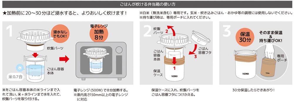 浸水不要。お出かけ前にレンジでチンするだけ。あったかごはんをランチで気軽に