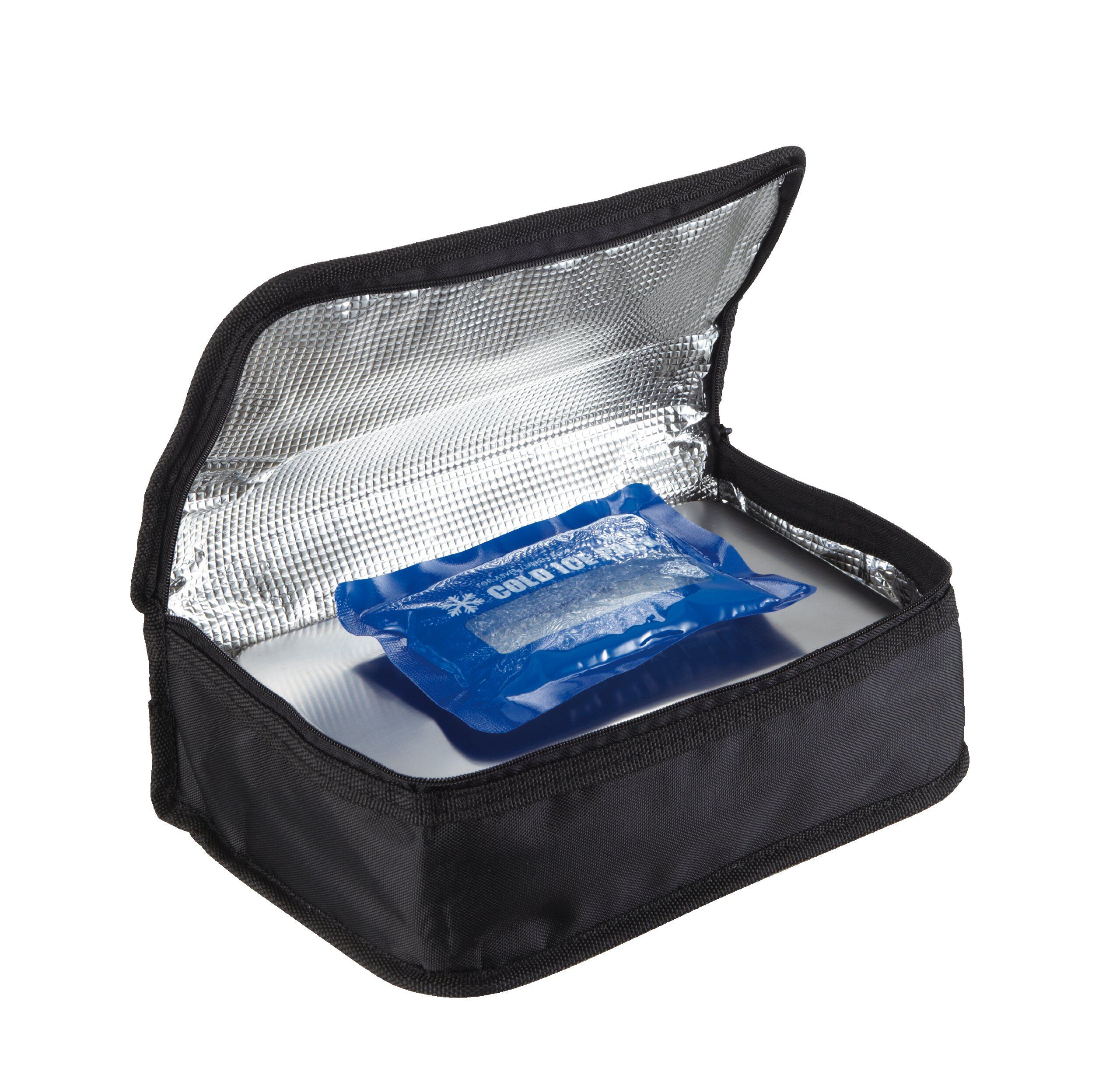 材質:表地/ナイロン、断熱材/ポリエチレンスポンジ、裏地/アルミフィルム、ファスナー/ナイロン、取手/亜鉛合金、保冷剤/ナイロン、ポリエチレン、保冷剤/高吸水性ポリマー