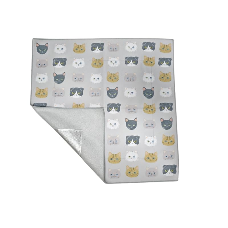 巻くだけ保冷クロス ピタッとくっつく保冷温マルチクロス ピタクロ お弁当袋 保冷バッグ 結ばないランチクロス おしゃれ 可愛い ペットボトルカバー 傘袋 横42×縦42cm (グレー ネコ)