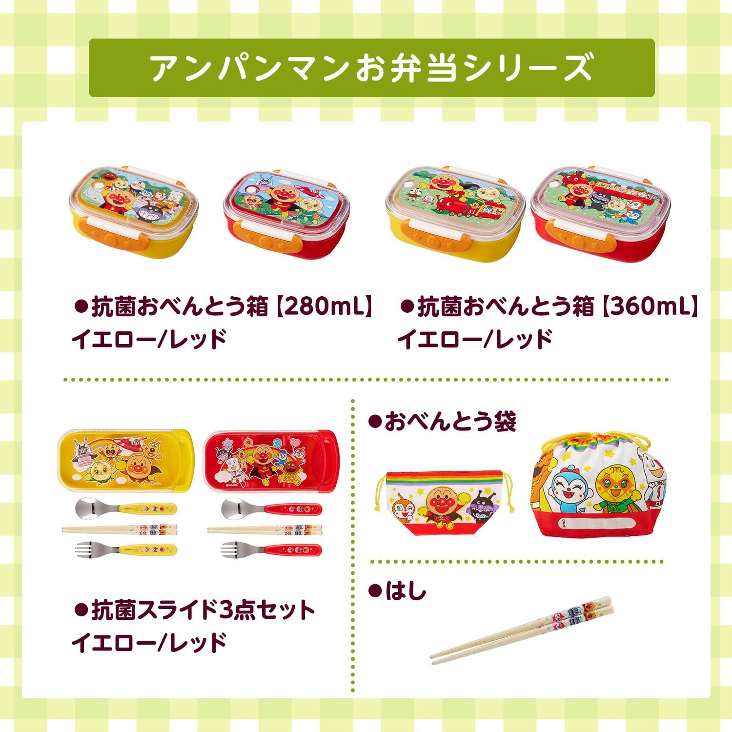 レック アンパンマン 抗菌 スライド 3点セット (フォーク スプーン 竹箸) イエロー/SIAA抗菌/なまえスペース付き/