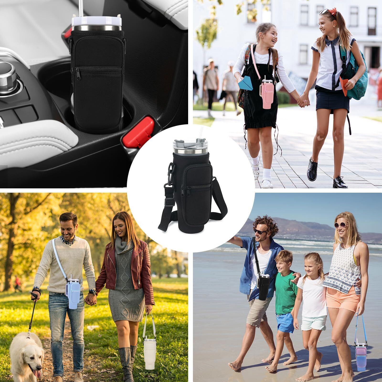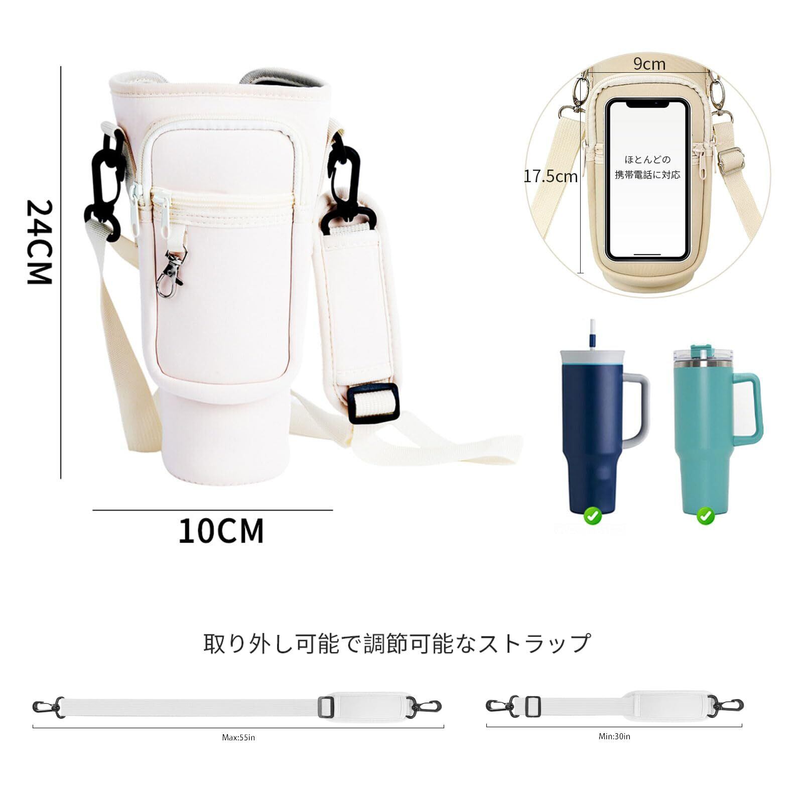 水筒カバー スタンレー用カップホルダー 水筒ホルダー キャリーバッグ付き 斜めかけ 調節可能なショルダーストラップ付き 対応スポーツボトル 魔法瓶用 正規品 水筒キャリングケース アウトドア ハイキング ウォーキング 旅行用
