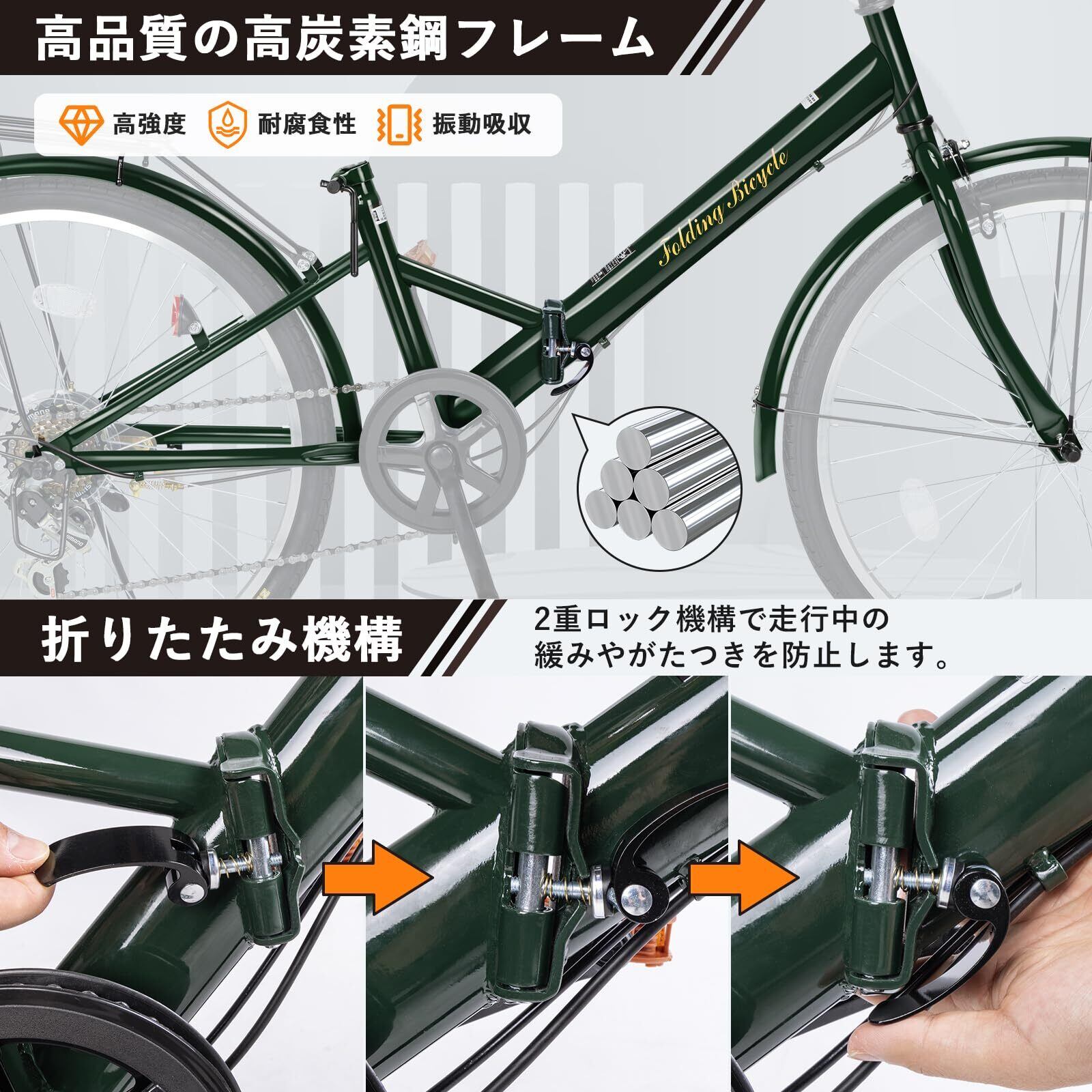 【素早く折畳可能・持ち運びに便利】この自転車は工具が要らず、素早く折りたためます。精巧な構造で折り畳み時に体積を大幅に縮小し、玄関や車のトランク、オフィスの隅などにすっきり収納可能です。連結部分は強化構造を採用し、1万回以上の開閉テストを経ても安定性を保持します。携帯と収納の利便性を確保しながら、走行時の安全性もしっかりとサポートします。