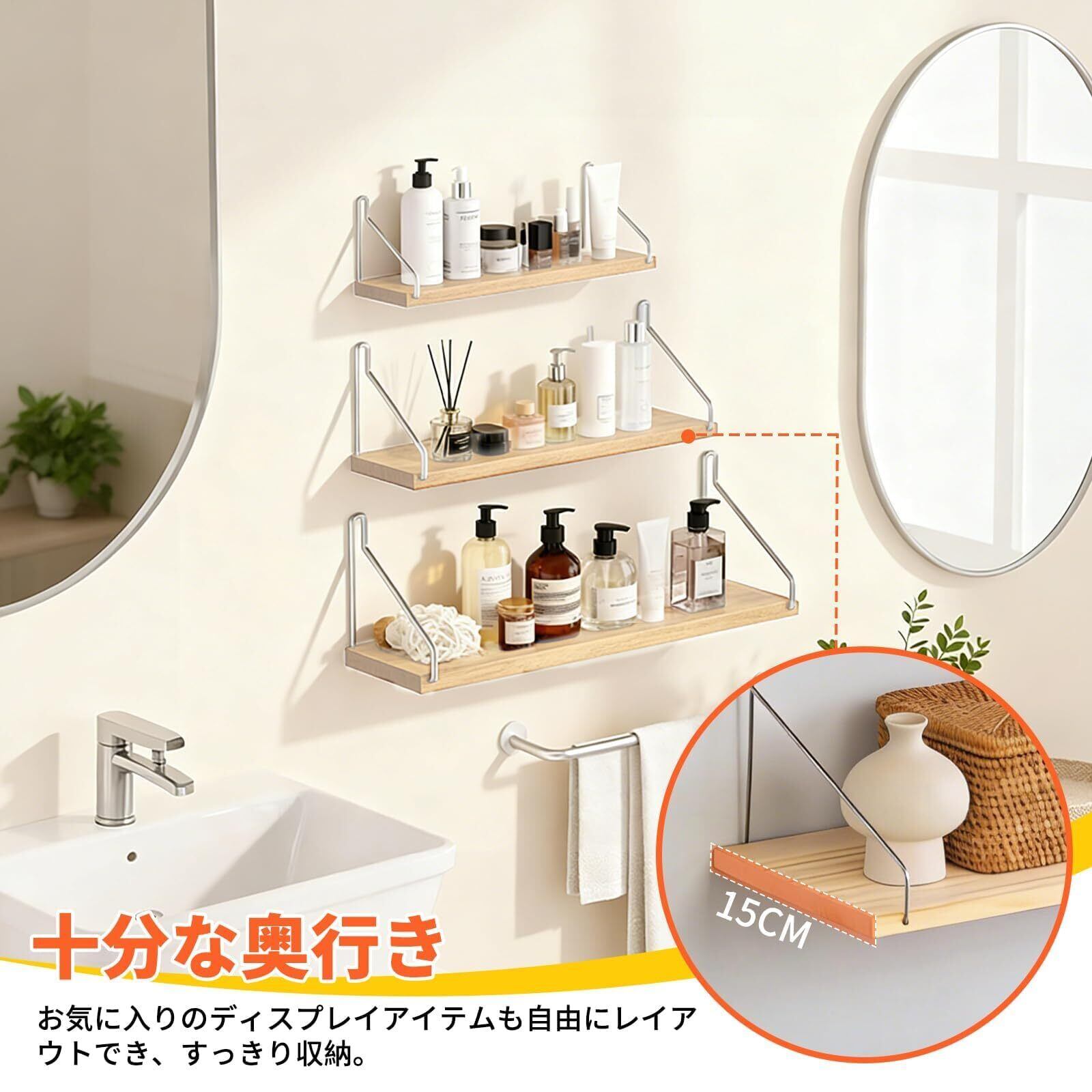 ウォールシェルフ 壁掛け棚 3枚セット 棚板 壁を傷つけない 30cm/40cm/50cm シェルフ 取り付け簡単 穴あけない 壁面収納 賃貸 インテリア 玄関 キッチン バスルーム リビング 吊具 壁に付けられる家具