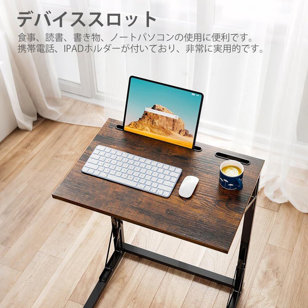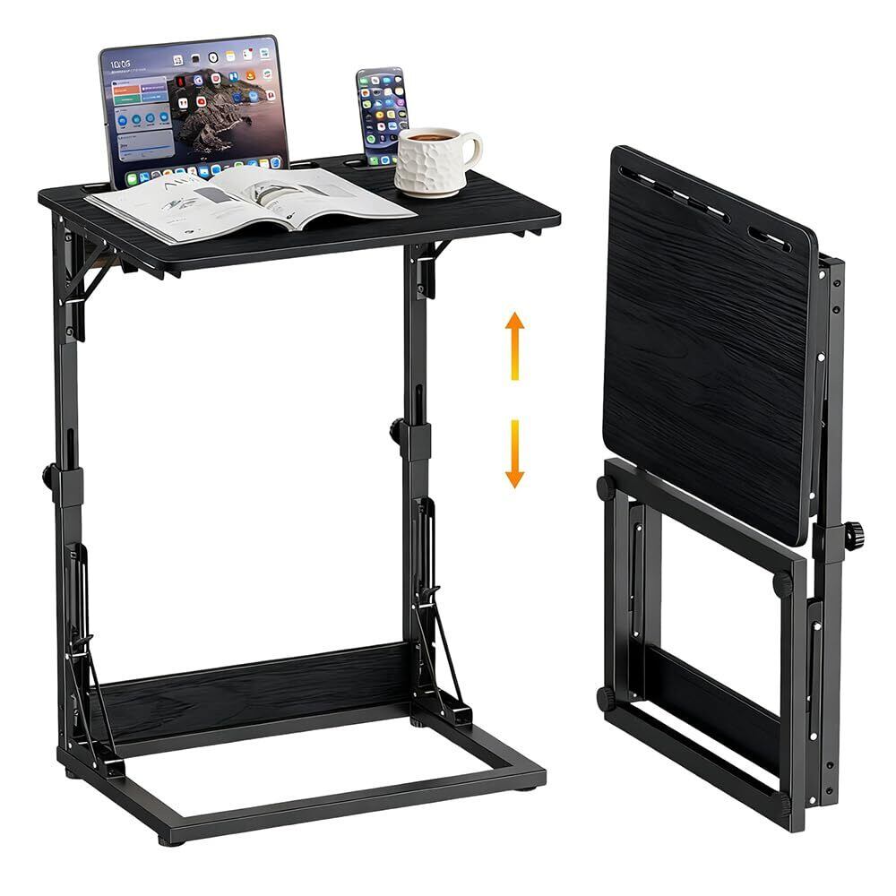 サイドテーブル ベッドサイド テーブル 昇降式 木目調 パソコンデスク オフィスデスク コの字型 高さ調節可能 ナイトテーブル ソファーサイドテーブル 小さい 一人暮らし 食卓 小型 (ブラック)