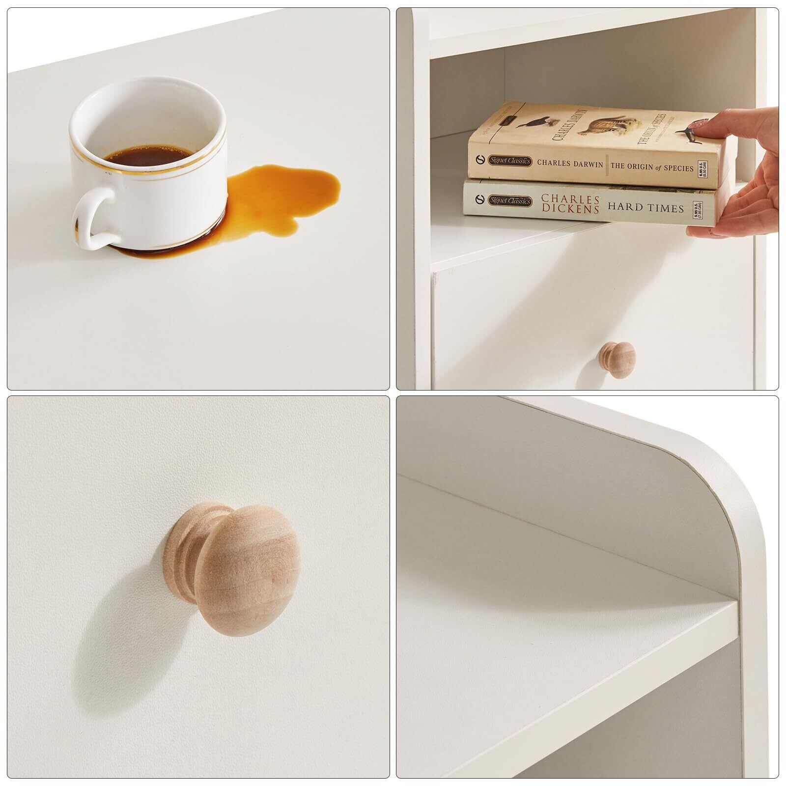 IBUYKE ナイトテーブル サイドテーブル ベッド サイドチェスト ベッドテーブル 引き出し付き 小型テーブル おしゃれ 木製 ソファサイドテーブル ベッド周り収納 組立簡単 北欧スタイル ベッドルーム リビングルーム 白い JPWNS005W