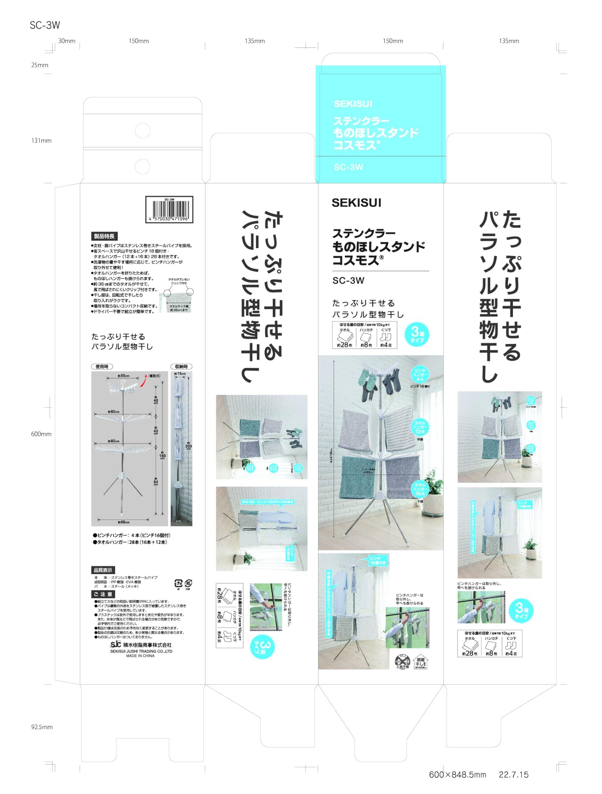 積水樹脂商事(Sekisuijushishoji) セキスイステンクラ-物干スタンドSC-3W ホワイト