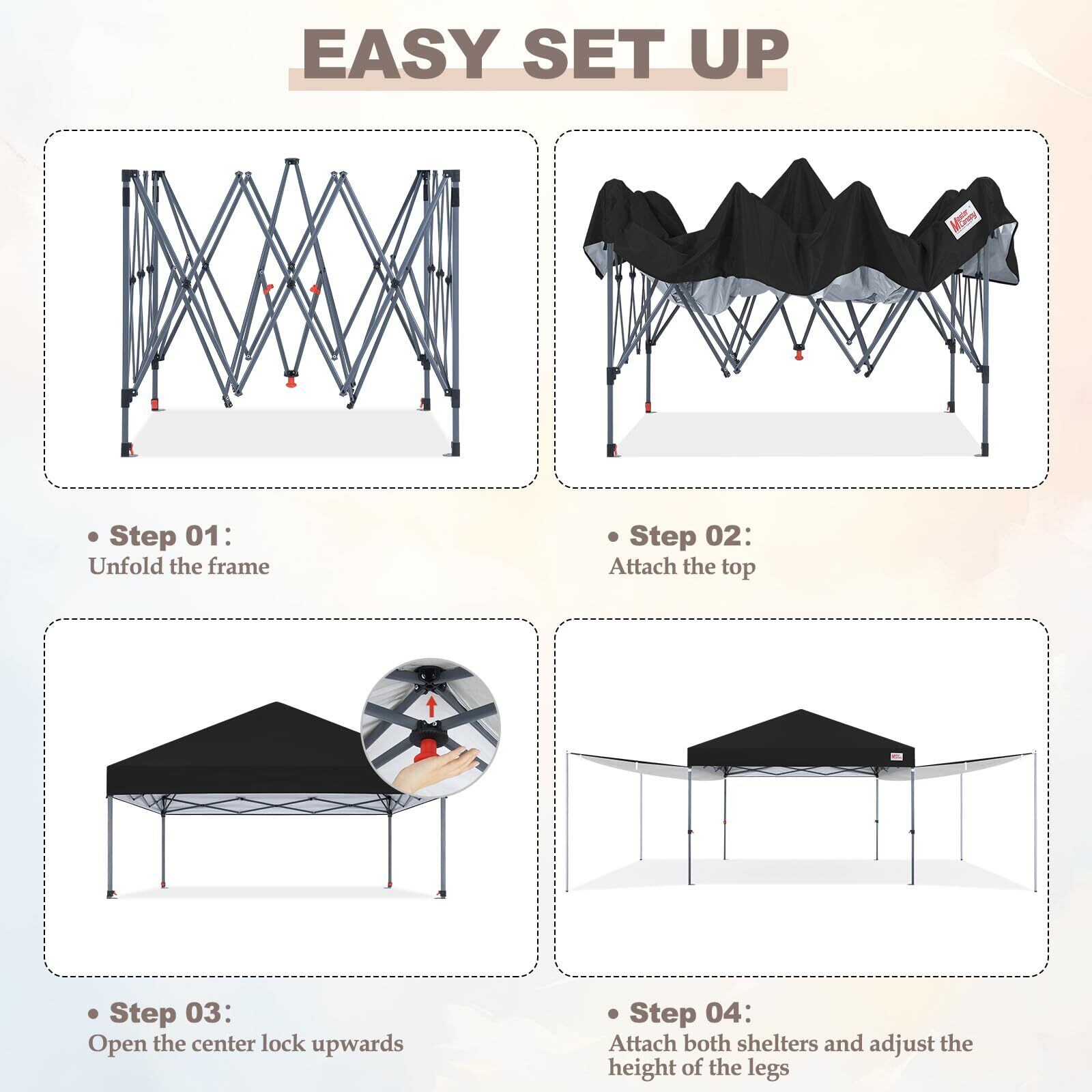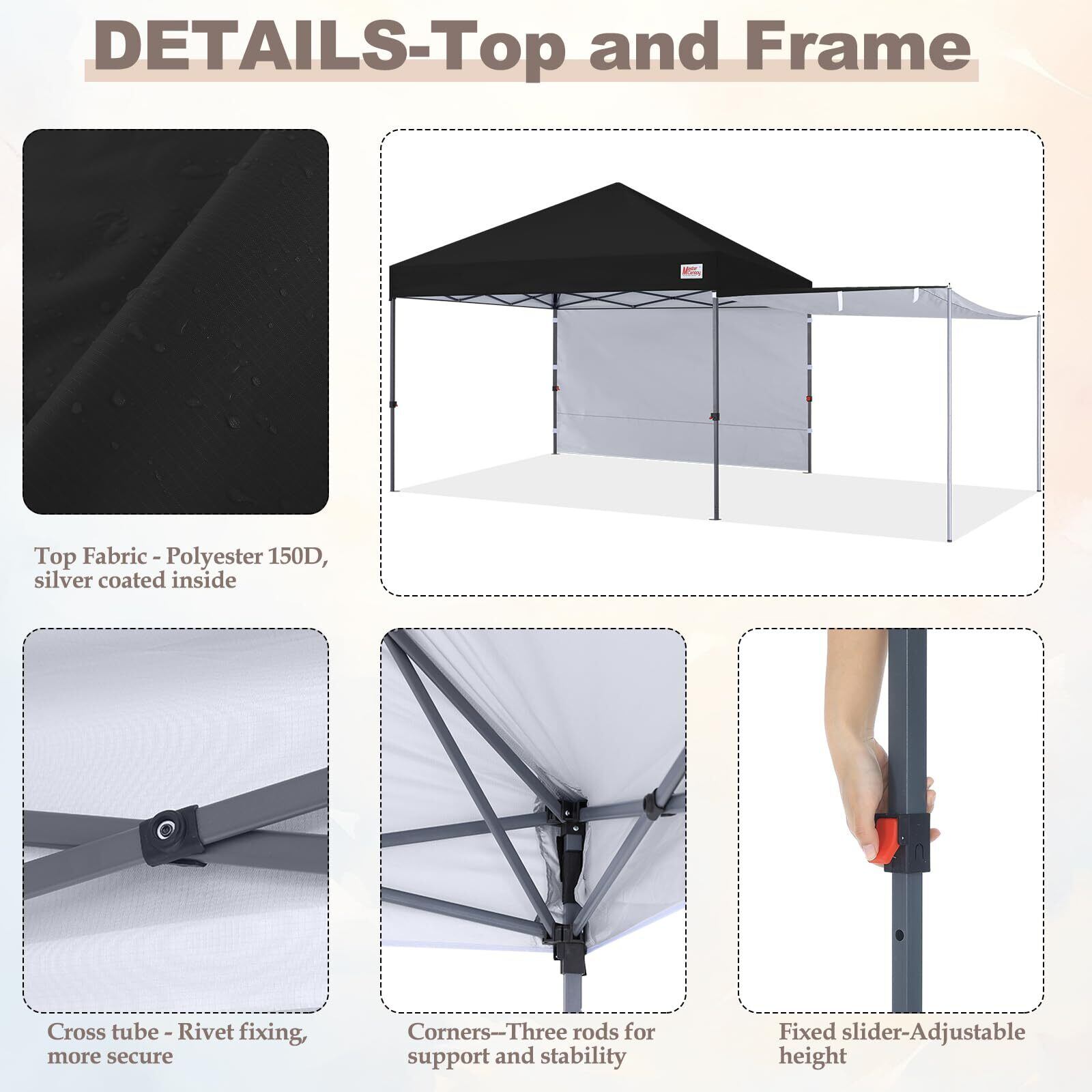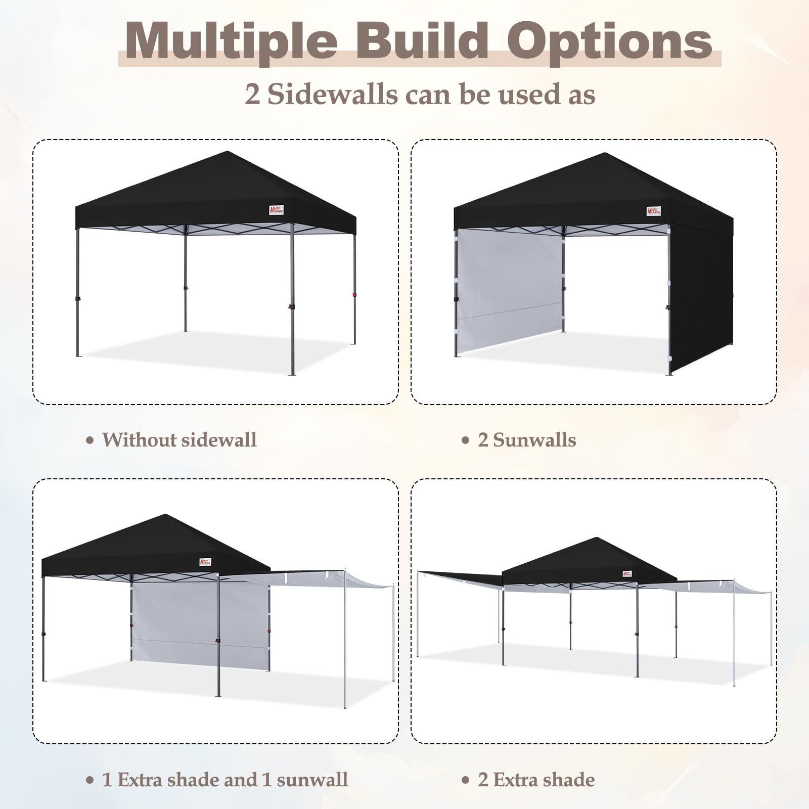 マスターキャノピー(MASTERCANOPY)ワンタッチタープテント サイドシート二枚+サイドポール四本セット オーニングタープ 大型 サンシェード 日除け アウトドア スチールフレーム 耐水 三段階調節(ブラック)