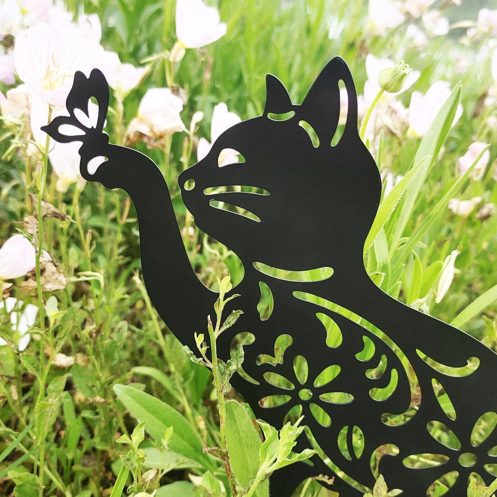 MrMrKura ガーデニング雑貨 猫 金属製 ガーデン 飾り プレート 猫 ガーデン置物 ガーデンオーナメント 透かし彫り 鉄製 屋外 ガーデンオブジェ 園林 園芸用品 芝生 お洒落 北欧 シルエット 屋根 インテリア (1匹猫)