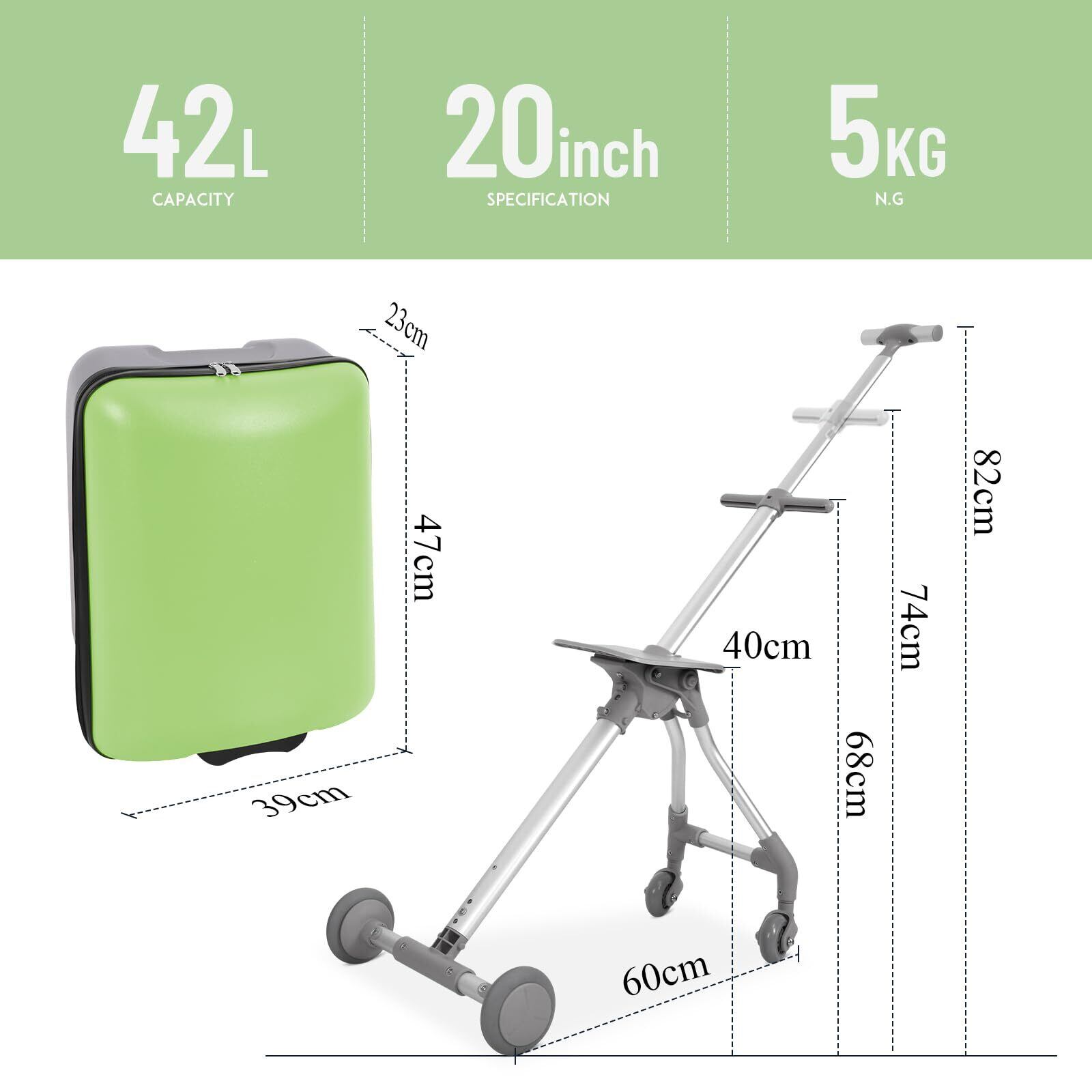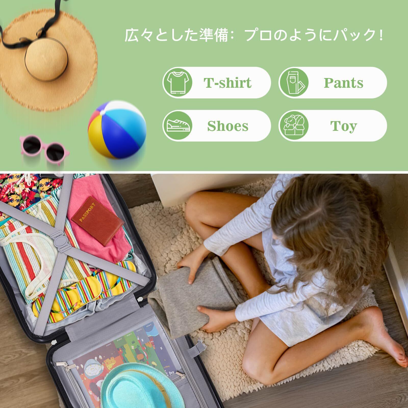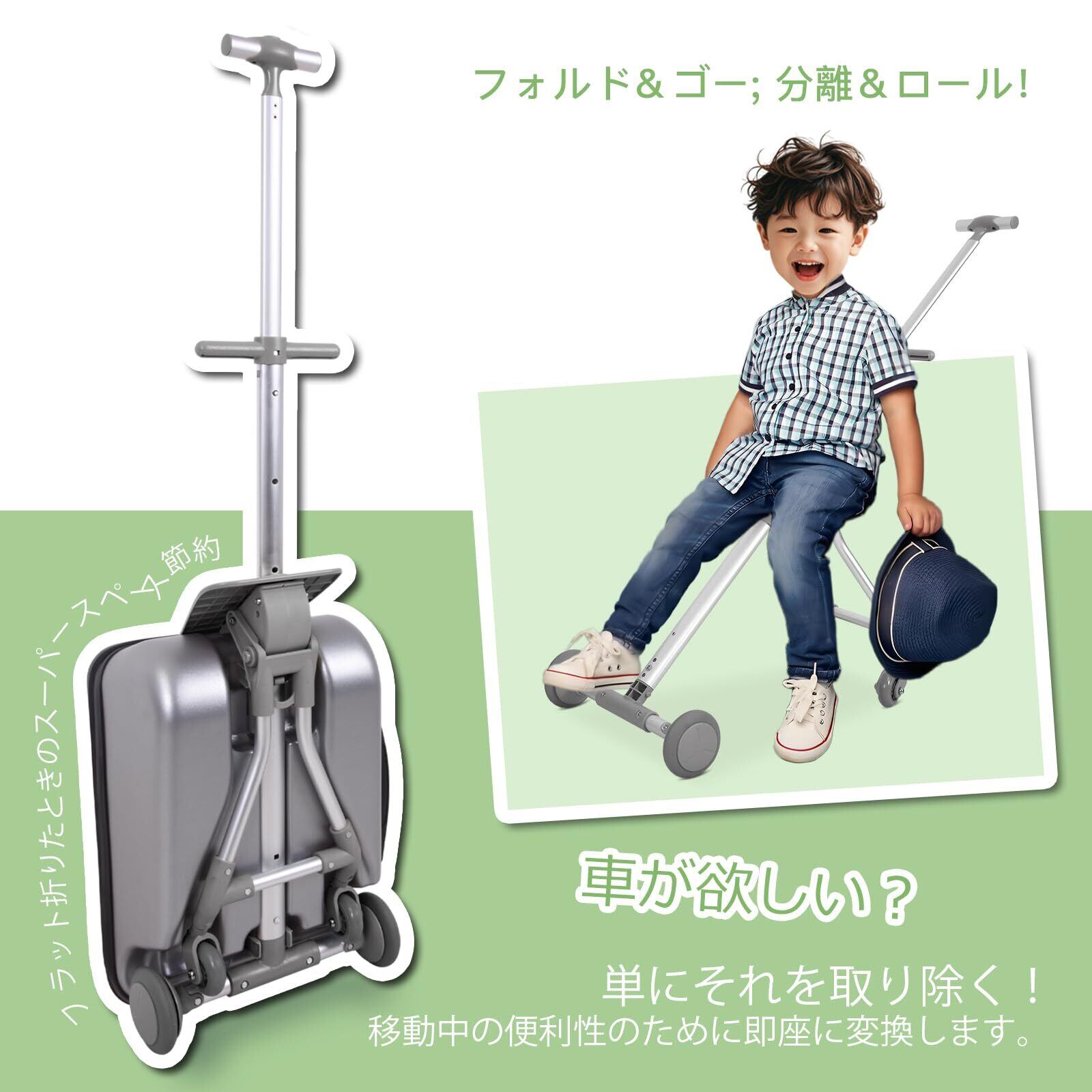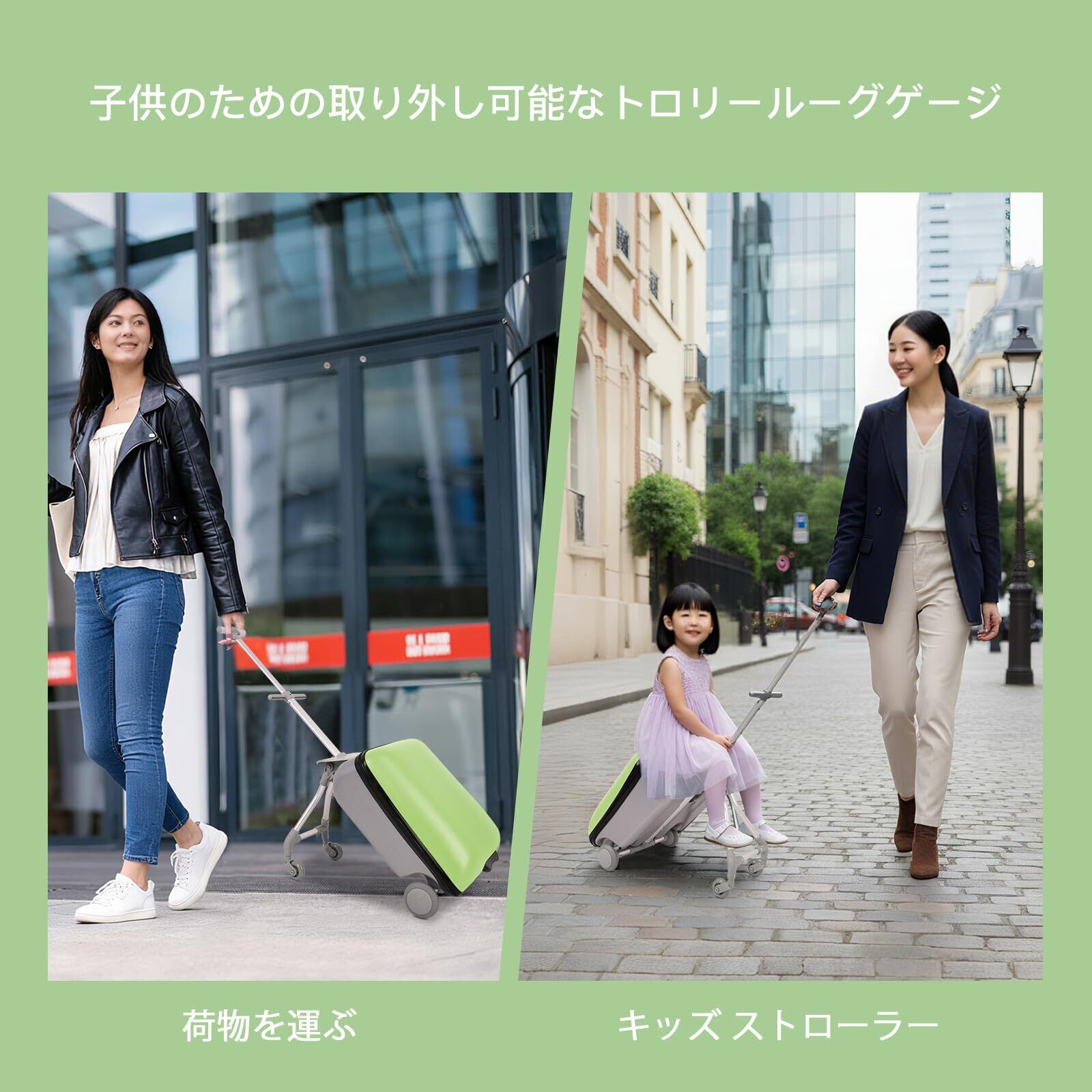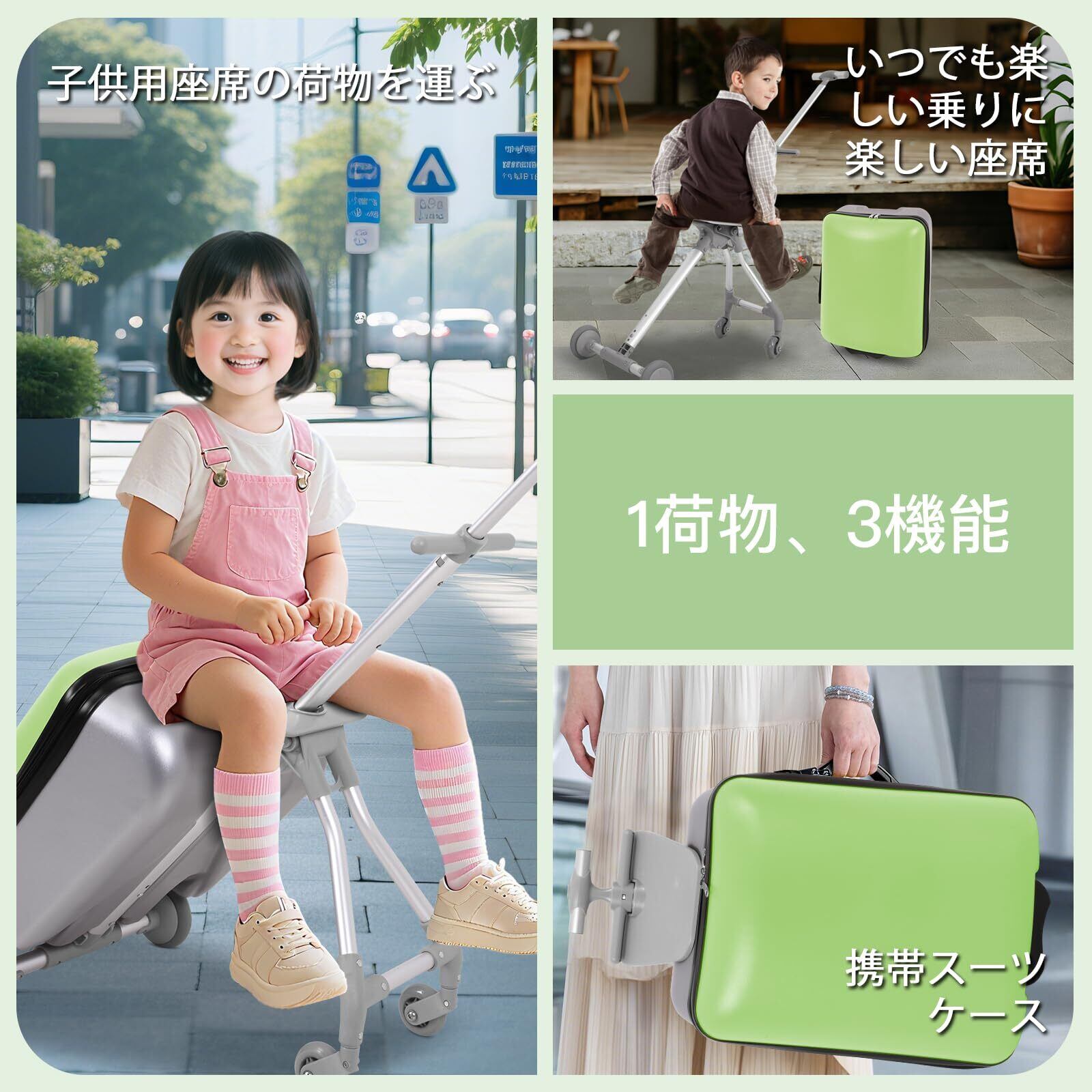 子供用スーツケース 乗れる 3WAY キッズ キャリーケース 20インチ 大容量40L ベビーカーとして利用可能 軽量 搭乗可能 安全ガード&フットレスト 旅行/遠足/帰省に最適 (緑)
