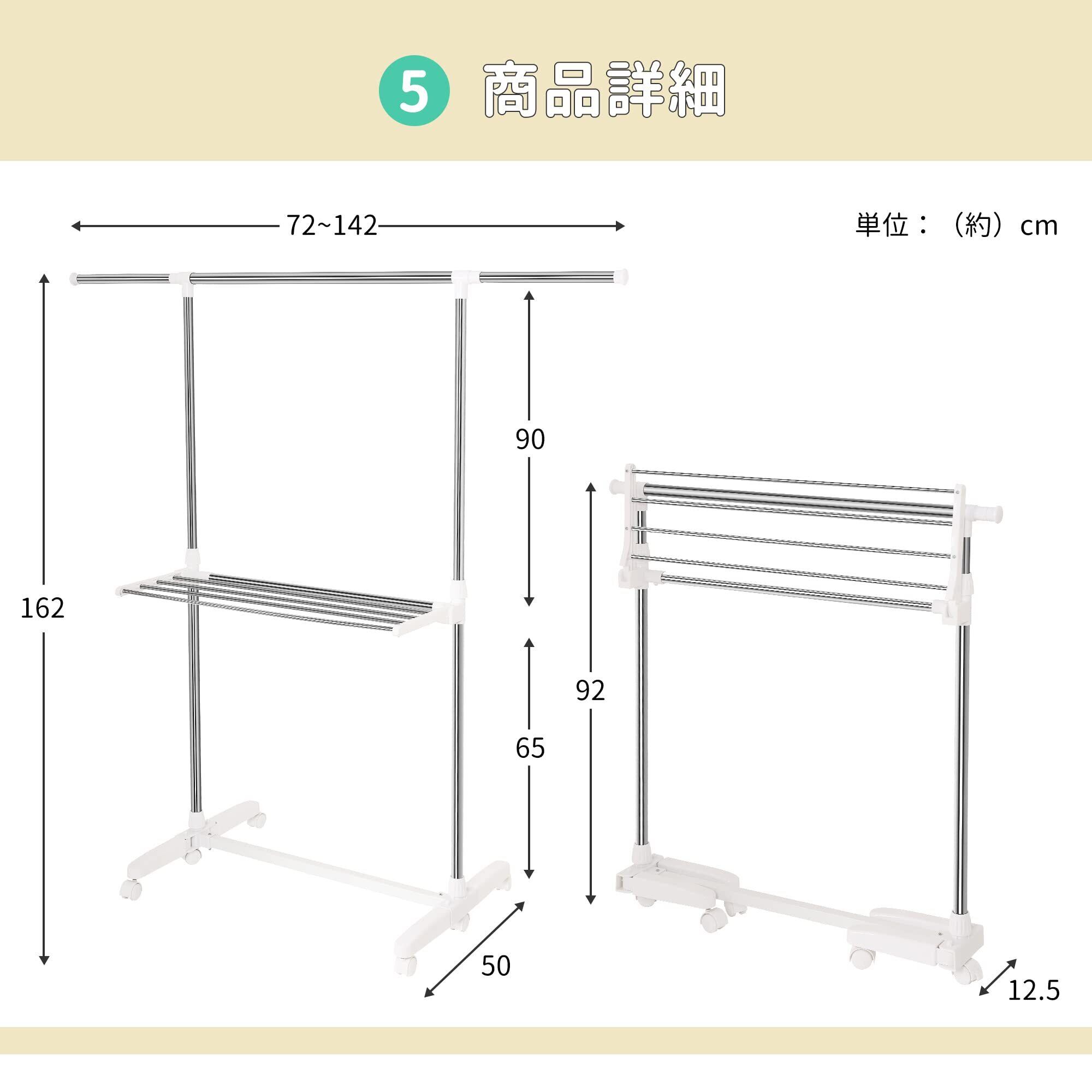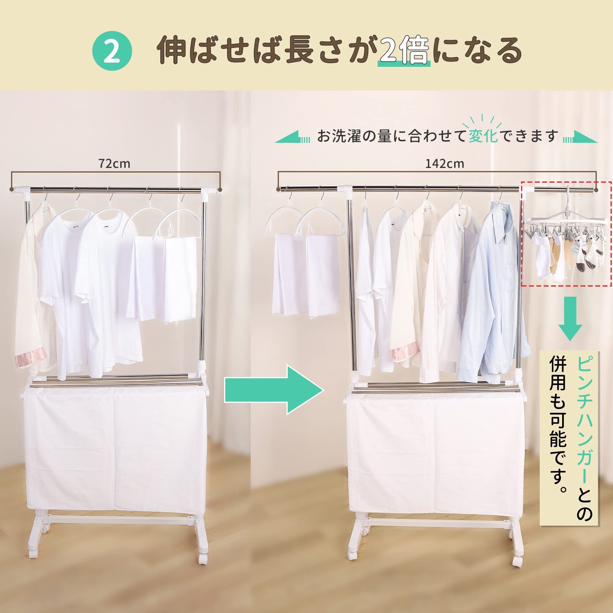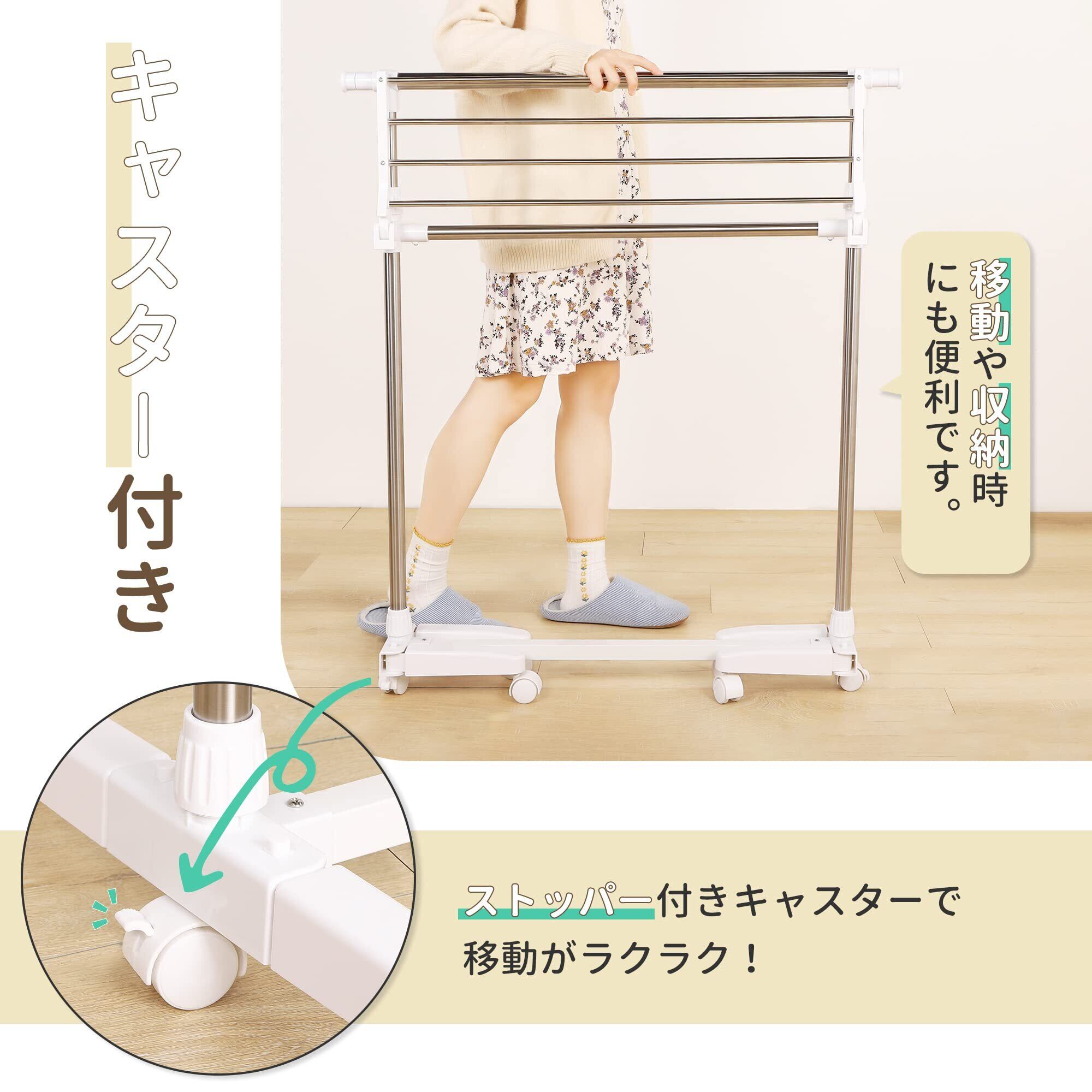 チチロバ(Titiroba) (TITIROBA) 洗濯物干し 室内物干し 物干しスタンド 折りたたみ I型物干し 幅72~142cm 奥行50cm 高さ92~162cm 組み立て簡単 ステンレス キャスター付き 移動便利 たくさん干せる 室内物干し コンパクト 省スペース ベランダ 物干し台 ホワイト