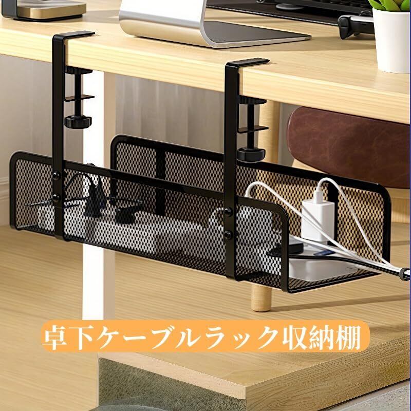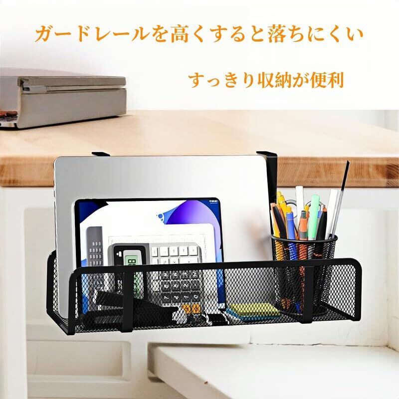 卓下収納ラック テーブル下置き棚 クランプ式 メッシュ収納 デスクサイドポケット ケーブル管理用トレー 配線隠し 電源タップ・ルーター収納対応 洞あけ不要 金属アーム付き ファイル・タブレット・小物収納 可動式オフィス収納