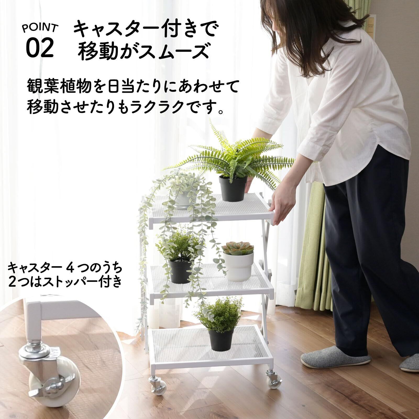 【キャスター付き】掃除の際なども、キャスター付きでラクに移動できます。移動させやすいのでデスク下で使ったり、リビングで植物を飾るプランターラックとしても。