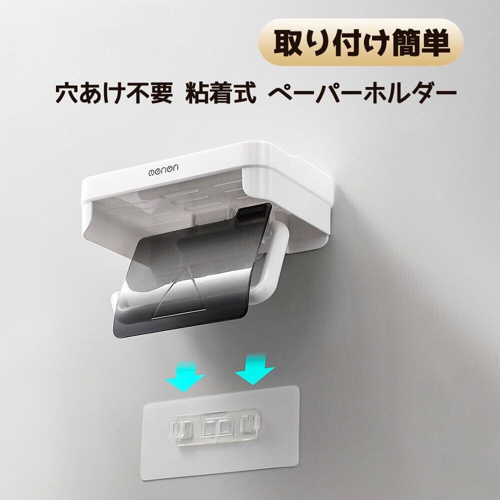 トイレットペーパーホルダー 穴あけ不要 粘着式 ペーパーホルダー 小物置き棚付き ティッシュペーパー おしゃれ ABS製 取り付け簡単