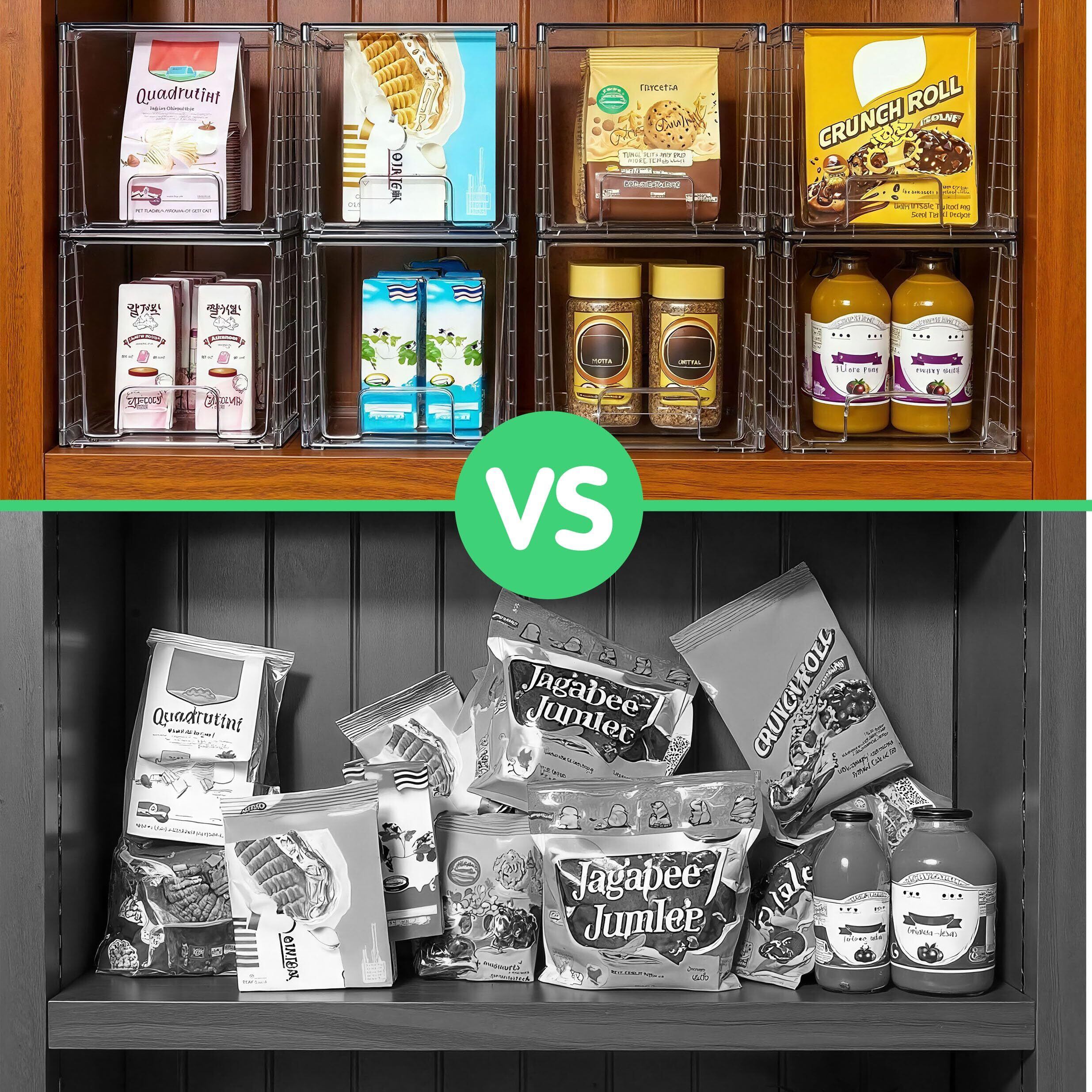 【多用途収納ケース】スナック、飲み物、フェイスマスク、化粧品、ローション、果物などの収納に最適です。パントリー、キャビネット、バスルーム、冷蔵庫など家庭のあらゆる場所で活躍。日常生活の整理整頓に便利です。️ 多様な用途に対応する万能収納です。