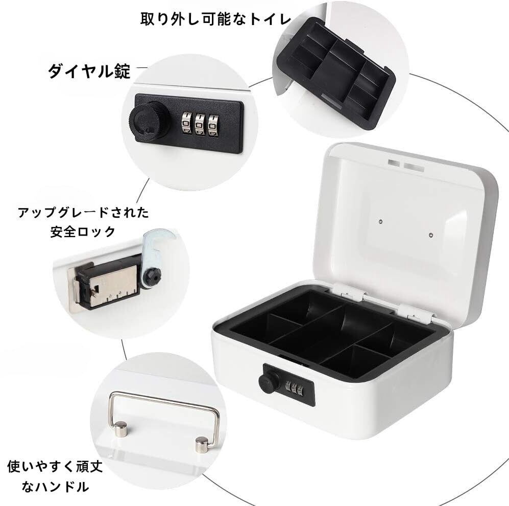 Beemyi手提げ金庫 ダイヤル付 キャッシュメイトA5サイズ 会計 オフィス ミニ金庫 貯金箱 スチール製 家庭用 (ホワイト, W25×D20×H8.8cm)
