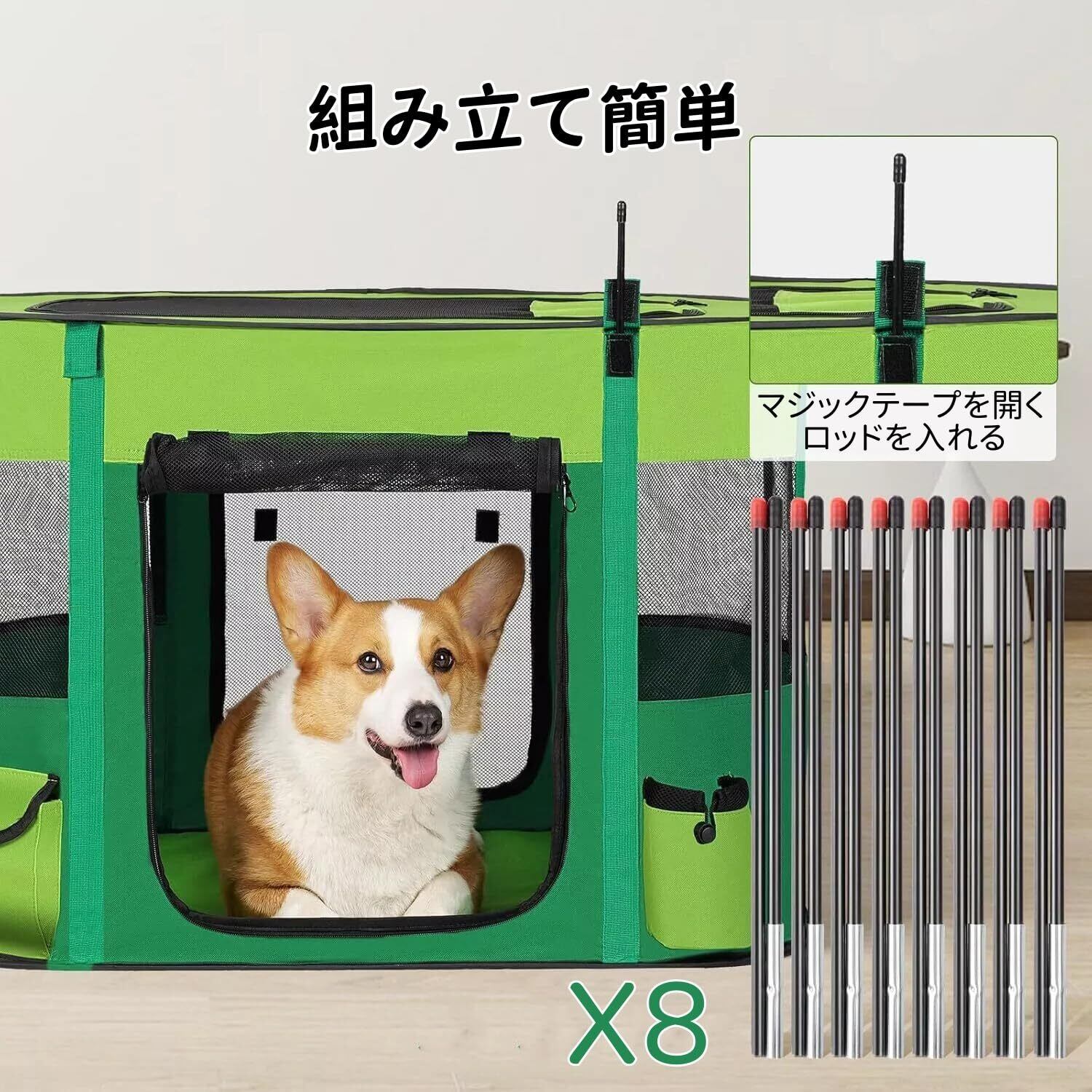 長方形 ペットサークル 折りたたみ 猫 犬 ケージ 組立簡単 キャリーバッグ付き ペットハウス サークル 軽量 コンパクト 防災ペットケージ 屋内 屋外 猫の分娩室 メッシュサークル(M(80*60*55cm), グリーン)