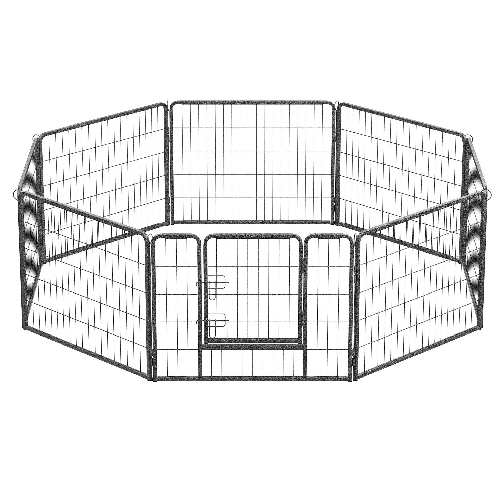 FEANDREA ペットフェンス 中型犬用 小型犬用 ペットサークル 折り畳み式 カタチ変更可 スチール製 犬ゲージ 複数連結可能 パネル8枚 室内外兼用 ドッグサークル 組立簡単 高さ60cm PPK86G