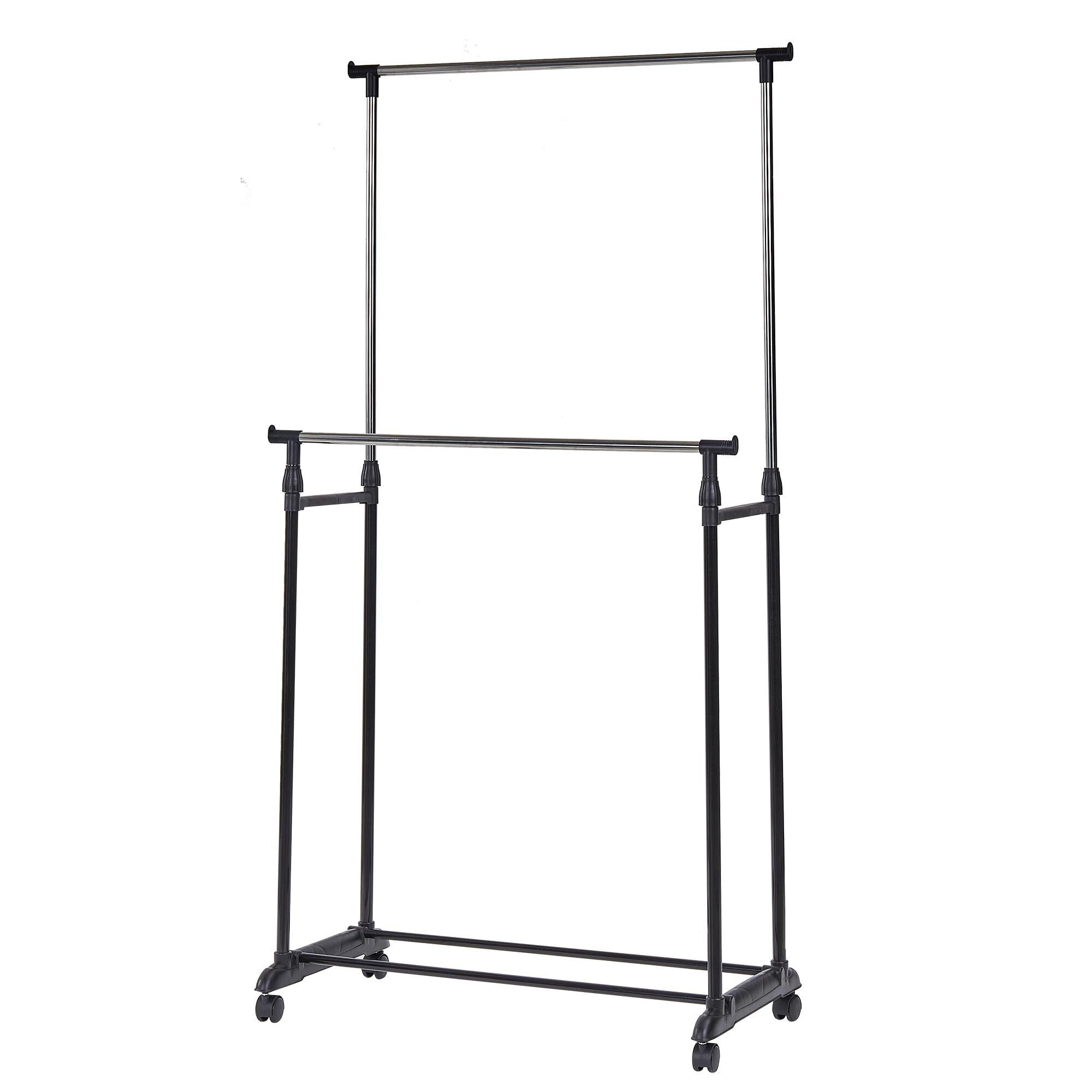 VECELO ハンガーラック ダブルパイプ コートハンガー 幅75×奥行47×高さ160cm 2段 高さ伸縮パイプ ポールハンガー 組み立て簡単 キャスター付き スリム 洋服掛け 帽子掛け 衣類収納 省スペース 高さ調節可能 スタンド コンパクト シンプル ブラック