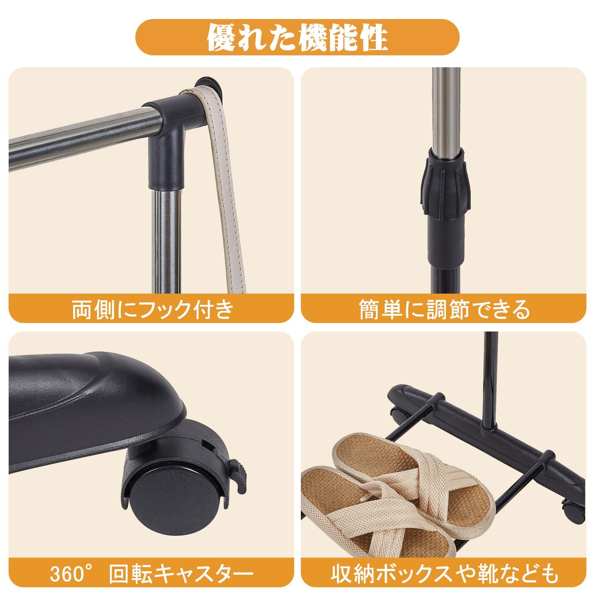 ハンガーラックは衣類だけでなく、帽子やカバンなども収納でき、スペースを最大限に活用できます。キャスター付き、高さ調節が可能なので、自分のニーズに合わせてご自由にお使いください。