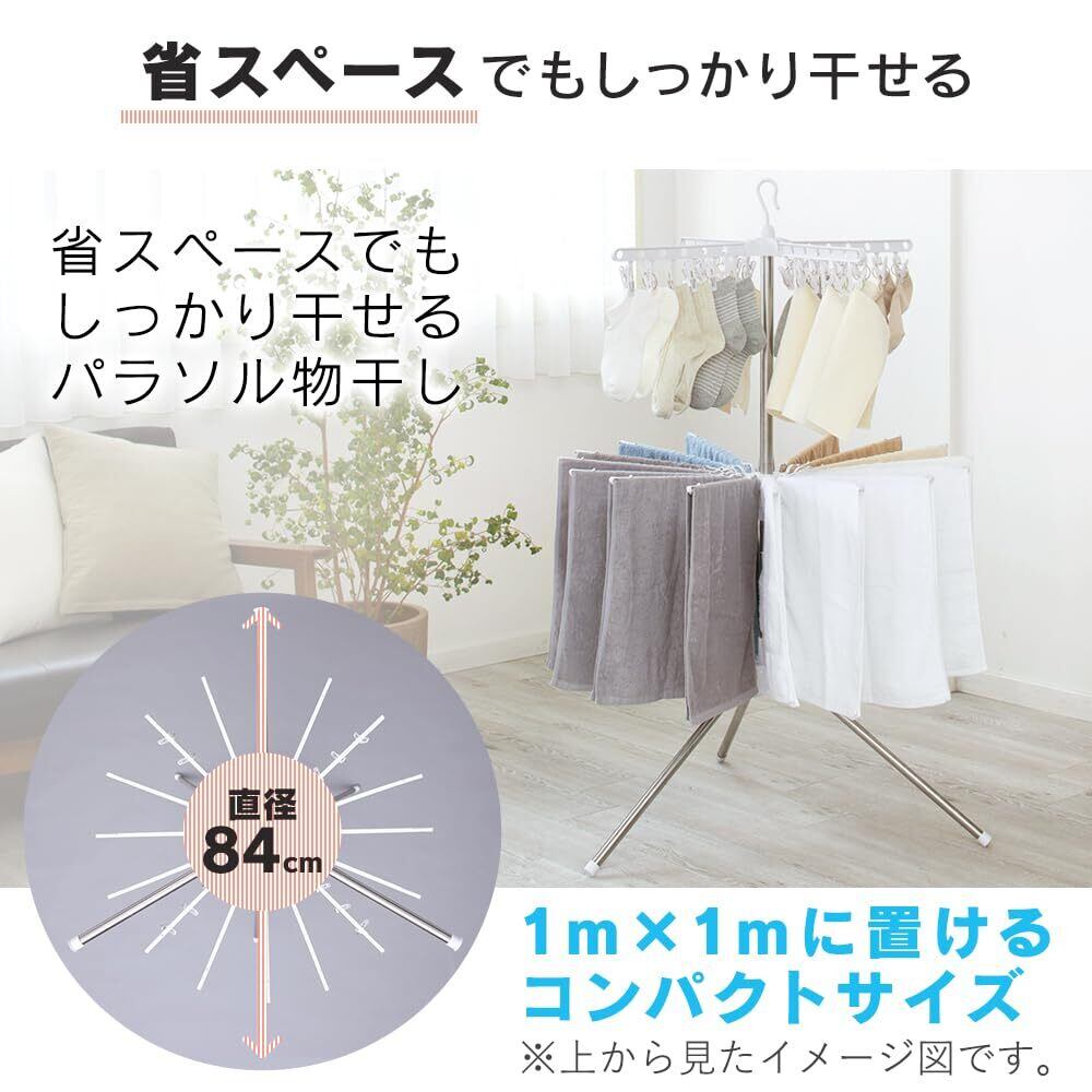 アイリスオーヤマ 高さ調節ができてピンチハンガーとしても使用可能なパラソル型 物干し 2段 直径約84cm CLS-132R