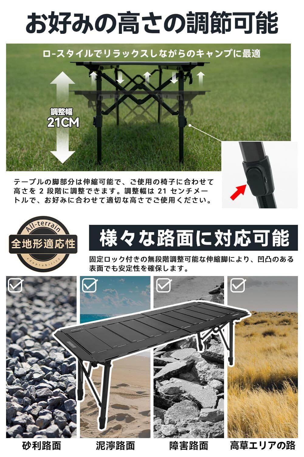 IGTテーブル 5ユニット アウトドアテーブル 高さ調整可能 137×58cm アルミ製 耐荷重50kg IGT規格対応 BBQ/キャンプ/焚き火台用 折りたたみ式 コンパクト収納バッグ付き(チタンブラック)