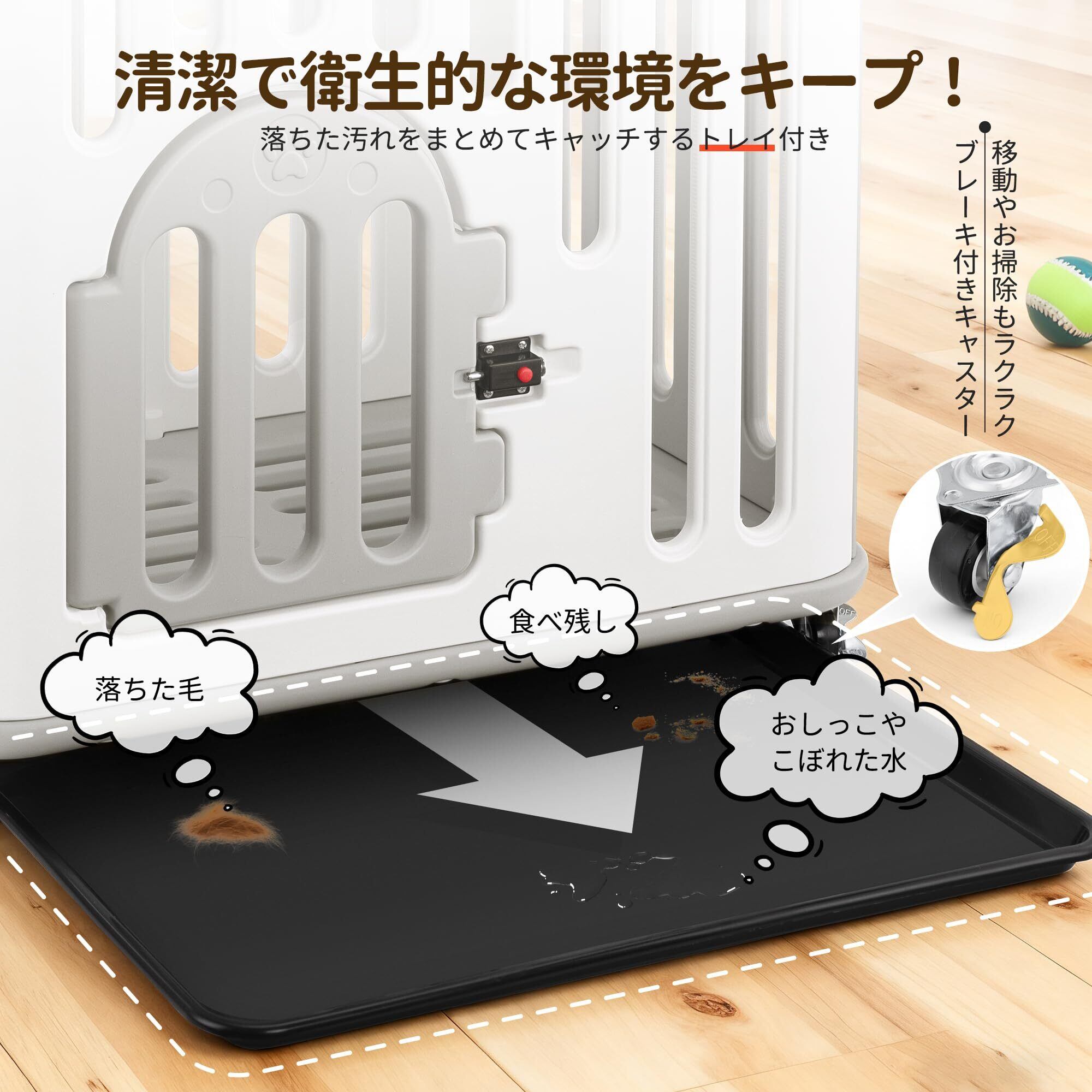 犬 ケージ MAZOT ペットケージ 小型犬 キャスター付き 犬 ゲージ 室内 掃除しやすい 引き出しトレー 組み立て簡単 脱走防止 頑丈 (61×45×58cm)