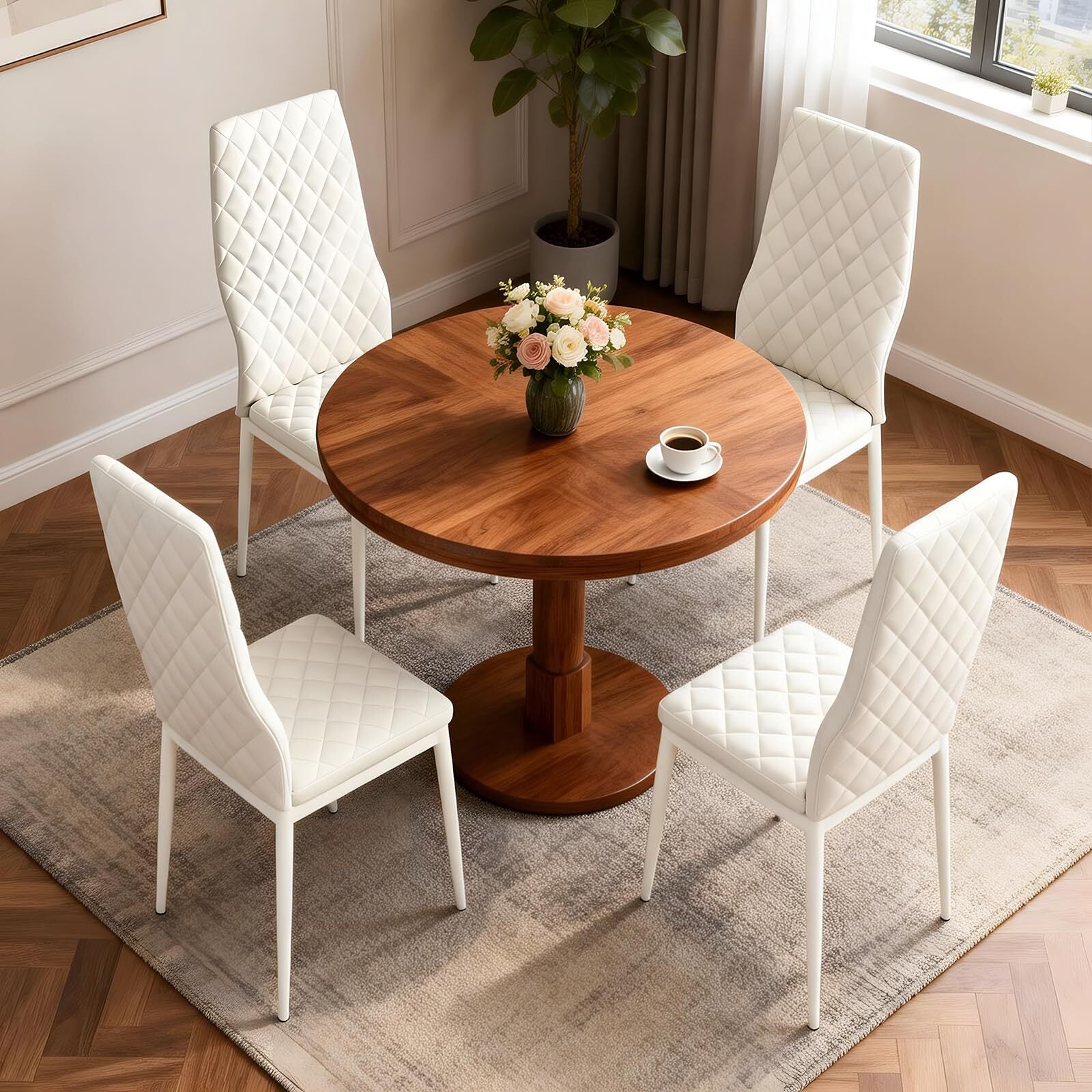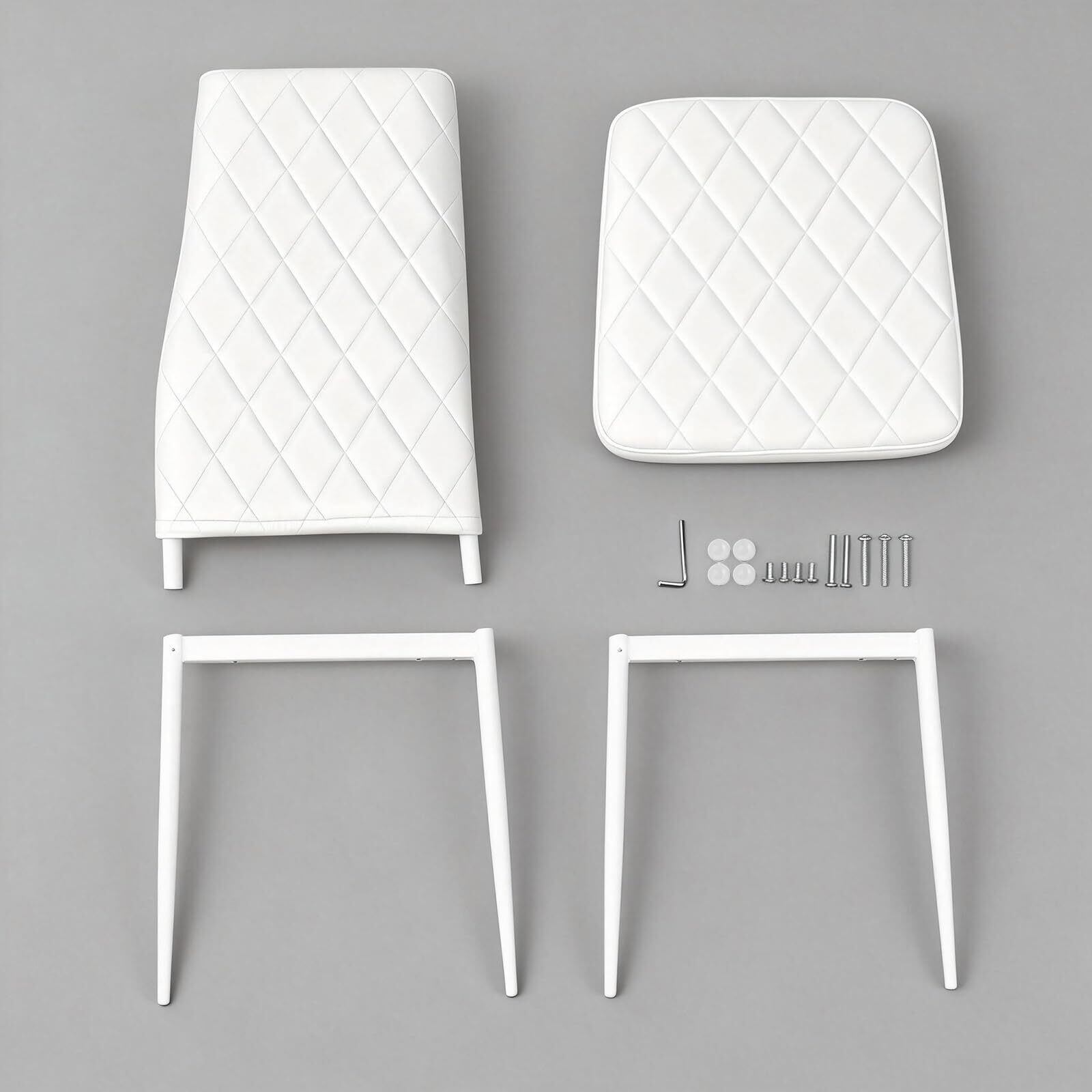HopeFamily ダイニングチェア 4脚セット北欧 おしゃれ 菱形 食卓椅子 クッション付き 椅子 4人掛け 包み込む快適さ 肘無し レザー スチール脚 組立簡単 汚れ拭き取りラクラク 耐荷重100kg 自宅 オフィス カフェ レストラン ホテル向け 40×40×96cm(ホワイト)
