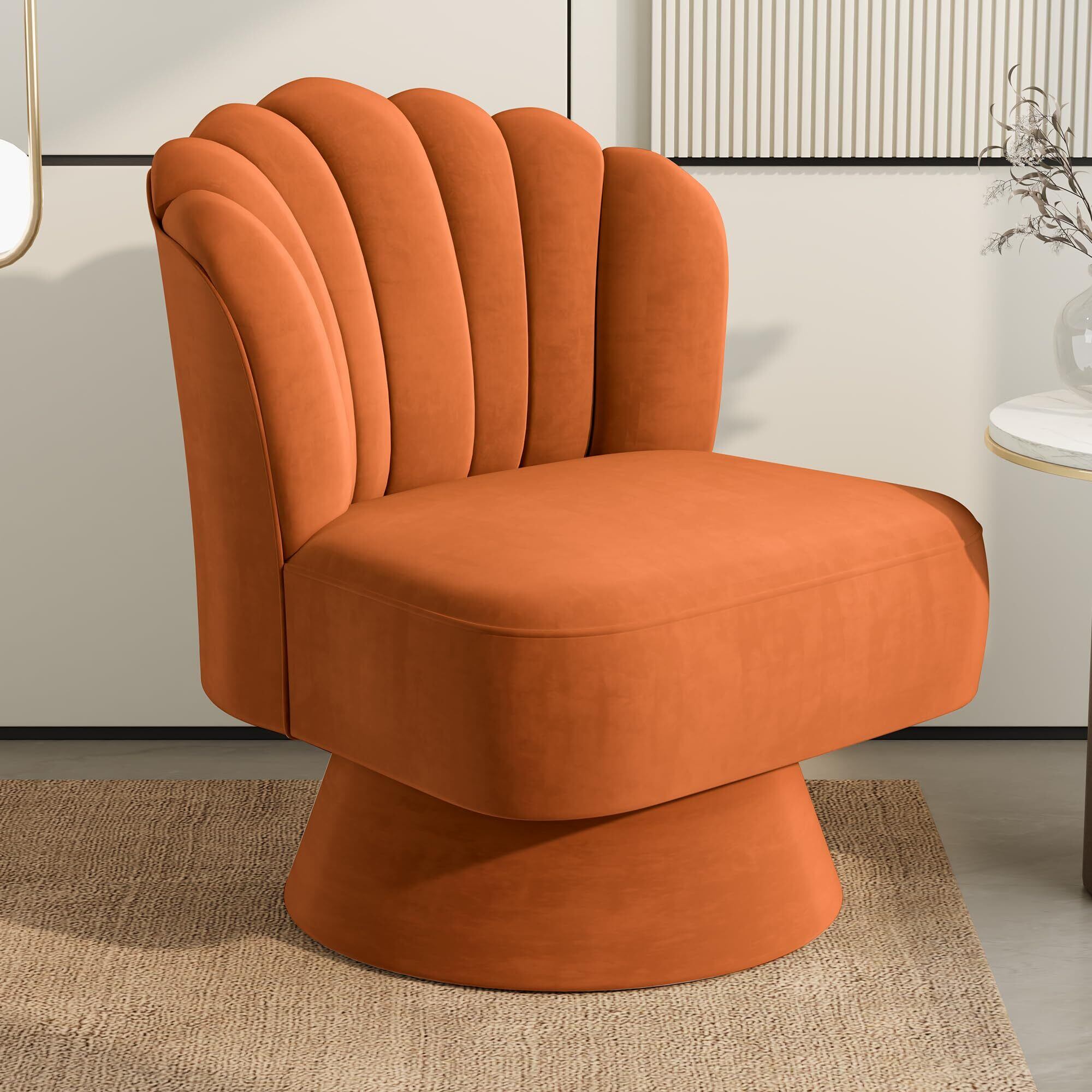 ソファー 1人掛け リラックス チェア バレルアクセントチェア 回転座椅子 シェル型 サイドコーナー 360度 タフティング加工の張り地 リビング ベッドルーム office chair ドレッサー(オレンジいろ)