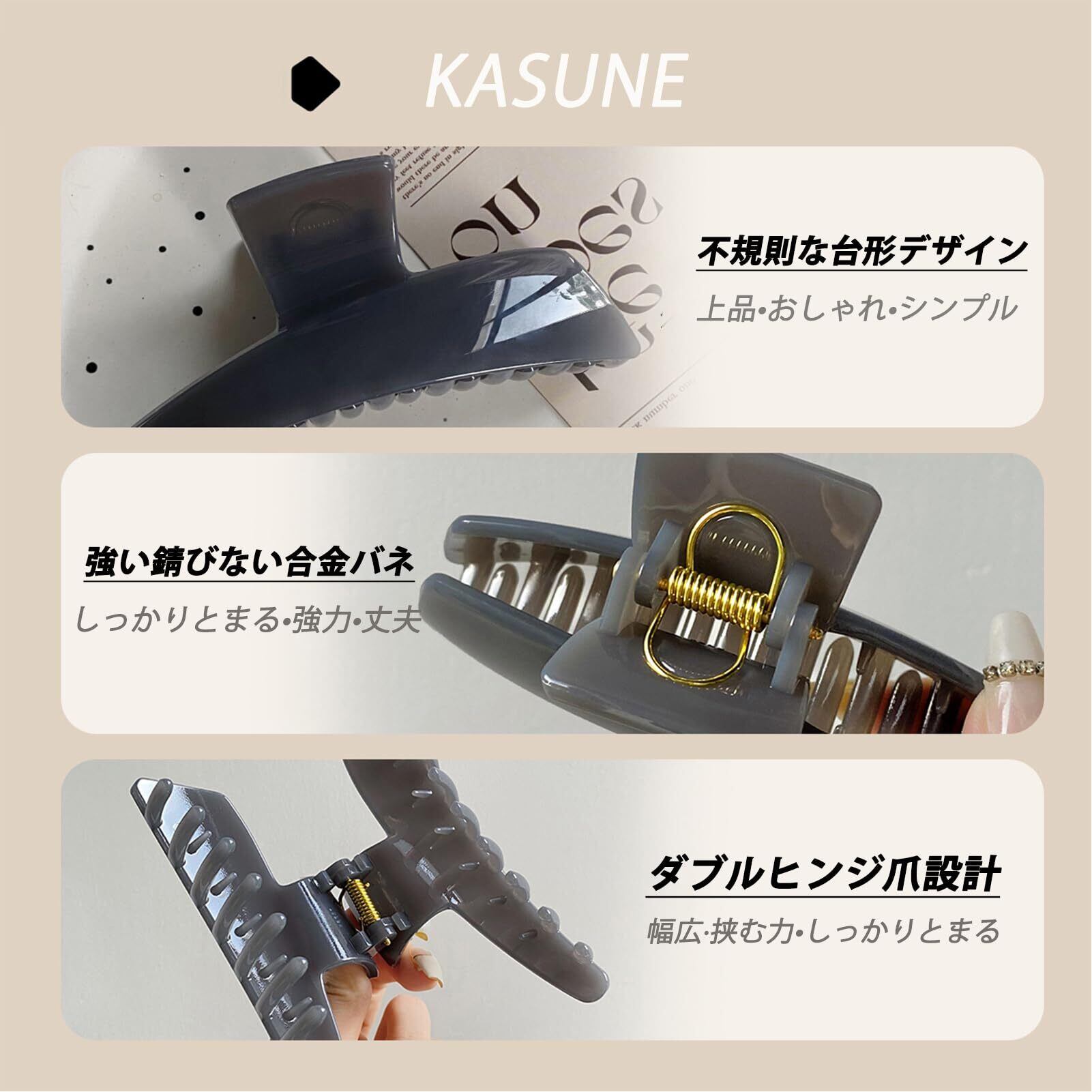 【使いいやすい】ユニークで柔軟なダブルヒンジ爪で設計されており、軽くてつかいやすいく、へこみ、ダメージ、絡まりなどなく髪を固定できます。複雑な手順を必要とせず、髪をねじってクリップで固定するだけで、髪から落ちないように固定します。