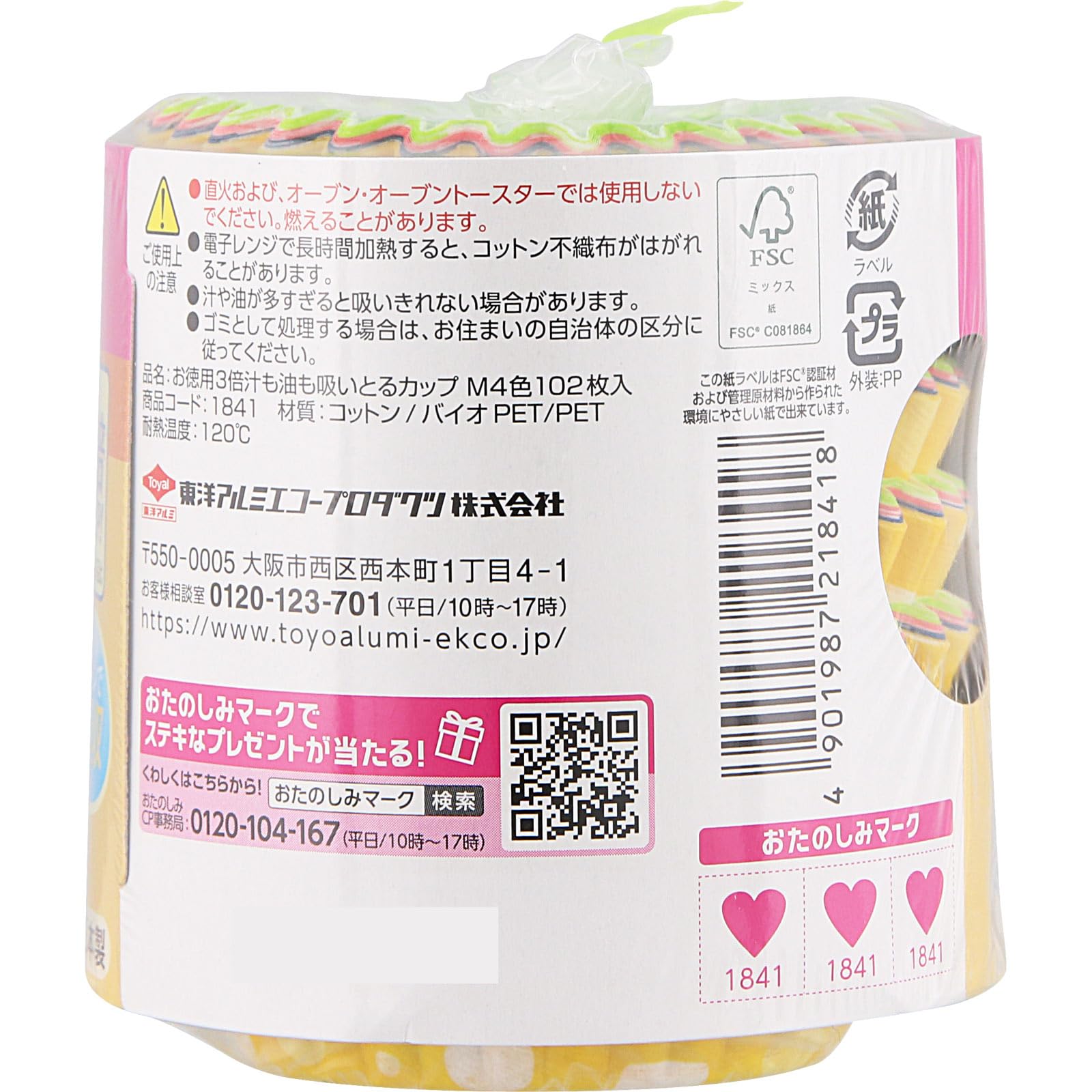東洋アルミ お弁当 おかずカップ M 102枚入 お徳用3倍 汁も油も吸いとる 日本製 揚物・汁気のおかずに 電子レンジ対応 S1841