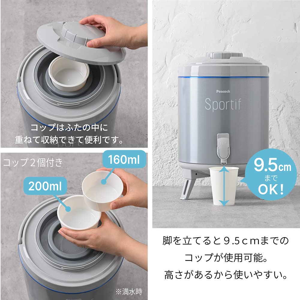 ピーコック魔法瓶工業(The-peacock) ピーコック ウォータージャグ 8.1L 日本製 保冷 保温 洗いやすい 広口 保冷力 大容量 軽量 キーパー 注ぎやすい レバー式 ジャグ シルバー INC-80 SL