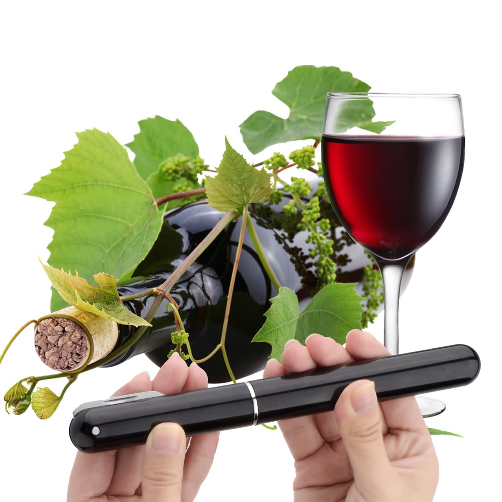 【効率的で便利】最新のデザインの空気圧ワインボトルオープナーは、シンプルで便利、そして軽量です。使用する場合は、ワインのコルクを針で刺し、ハンドルを握り、空気を3〜7回上下に引いて、コルクやボトルを壊したり、木を切ったりせずにコルクを取り出します。清潔で衛生的で、お手入れ後も何回でもお使いいただけます。
