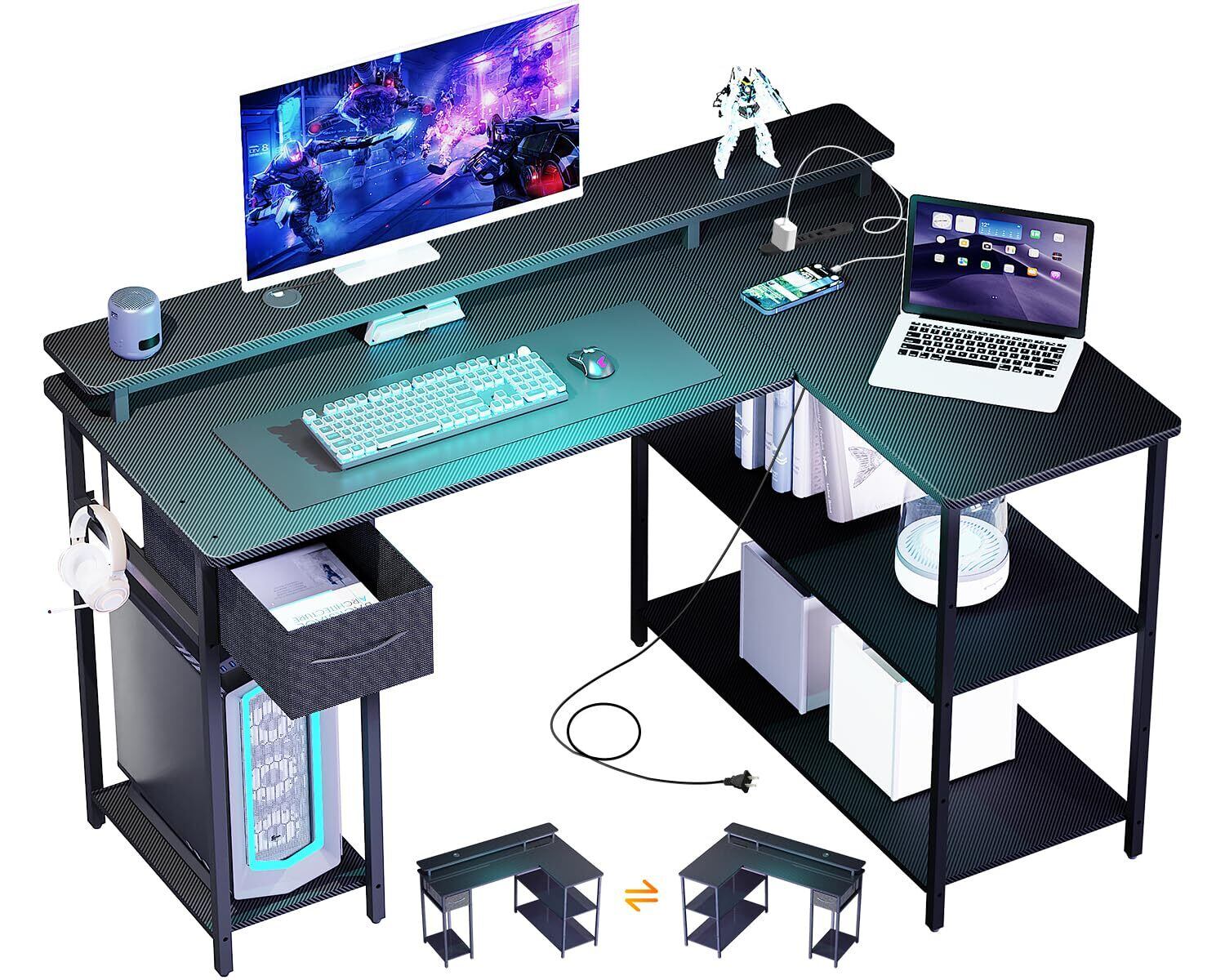 VARNIC ゲーミングデスク パソコンデスク L字型 左右組み替え可能 pcデスク オフィスデスク 115cm長さ*80cm奥行*75cm高さ モニター台付き 可動式棚板 引き出し付き 調整可能な脚 省スペース おしゃれ 勉強机 L字デスク 組み立て簡単 頑丈 学習デスク テレワーク リモートワーク ゲーミング