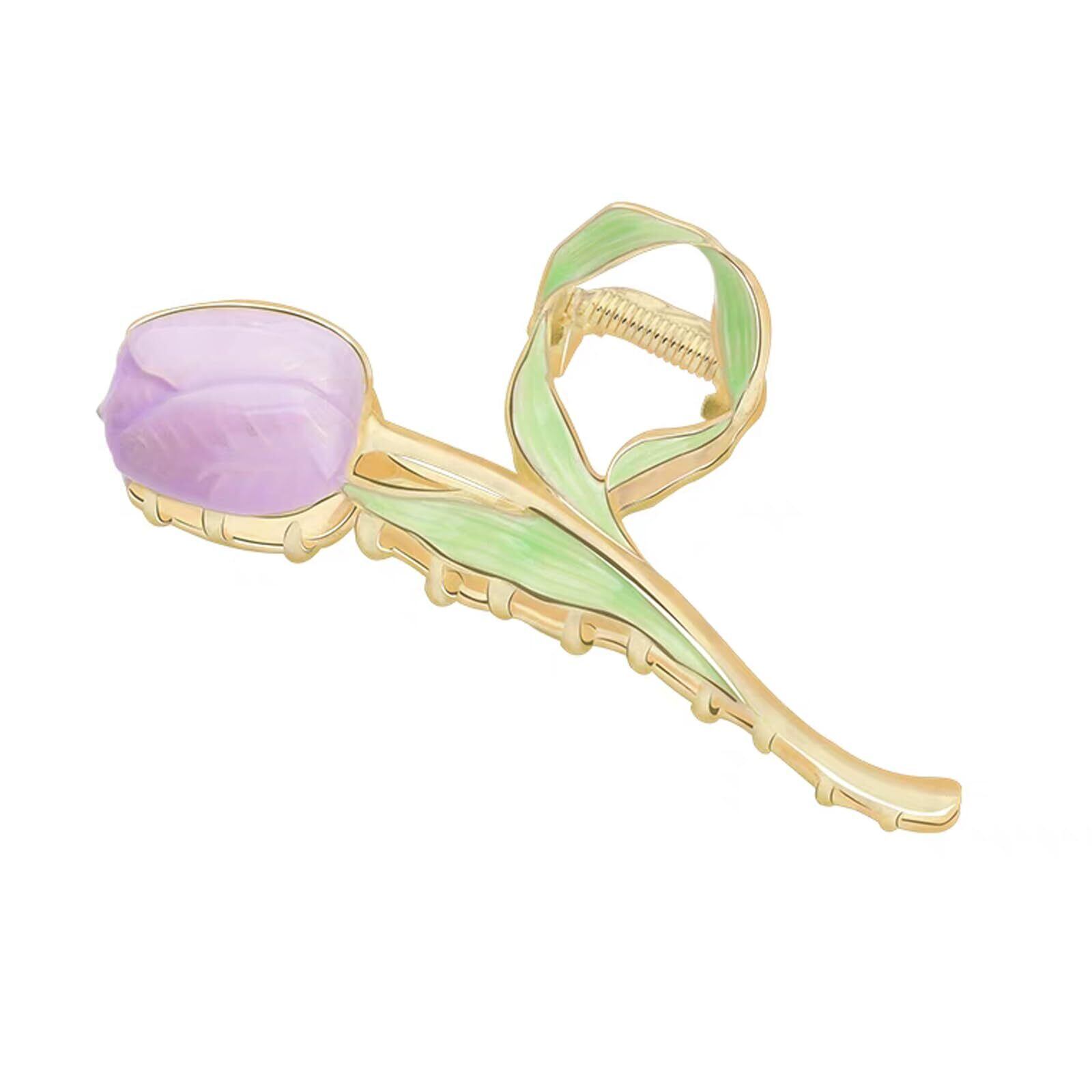 バンスクリップ ヘアクリップ オフィス シンプル ヘアアクセサリー 髪飾り 人気 髪留め 韓国風 おしゃれ 贈り物 レディース用 クリップ 大きめ オフィス (紫のチューリップ)
