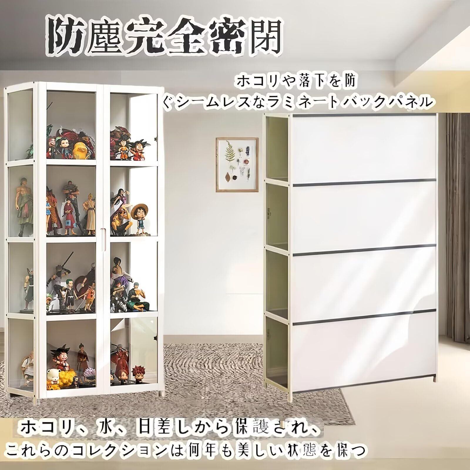 【ディスプレイラック防塵】ディスプレイキャビネットは両開きドアのデザイン、親密な溝ハンドル、開閉が簡単、出し入れが簡単。シームレスなラミネート加工された背面パネルがほこりや落下から保護します。シンプルでモダンなデザインで、コレクションを展示し、ホコリを防ぎます。