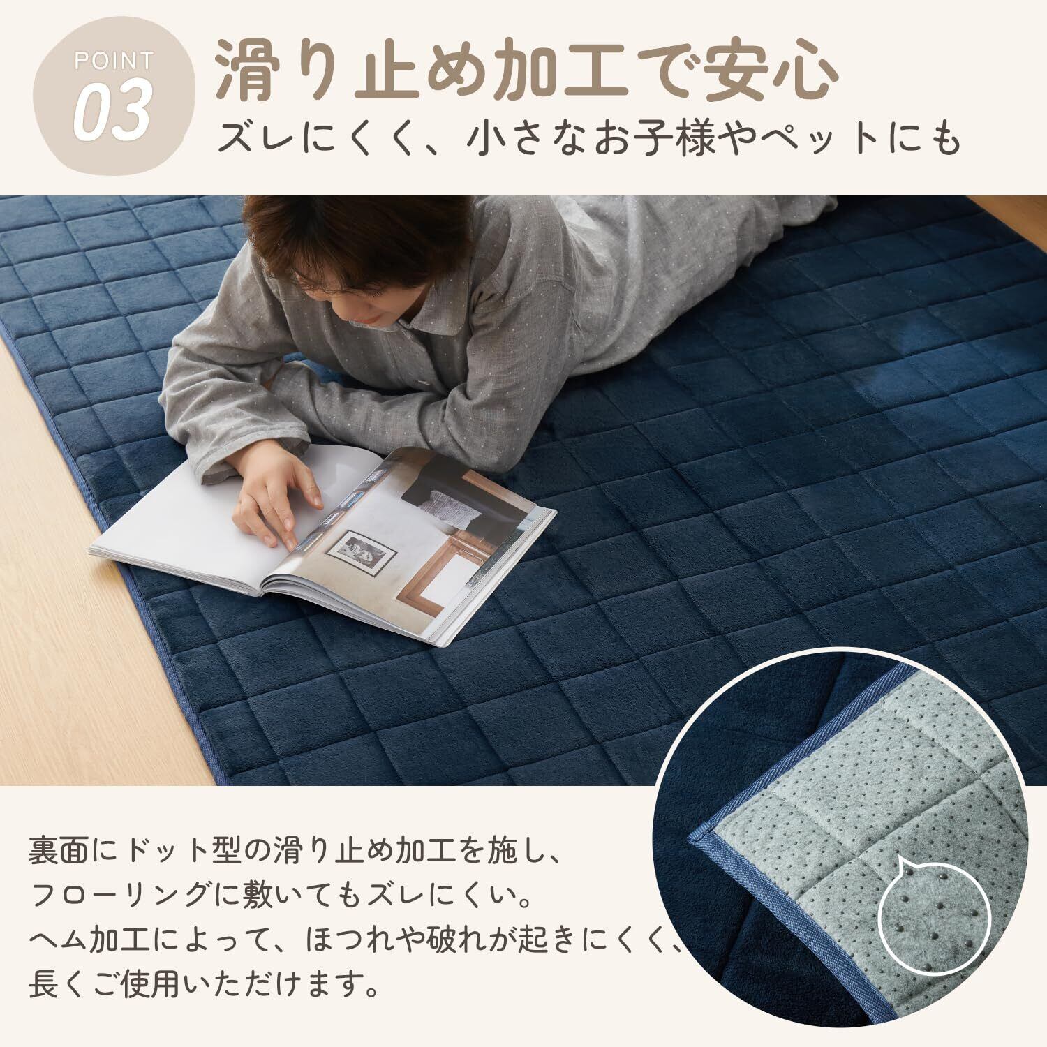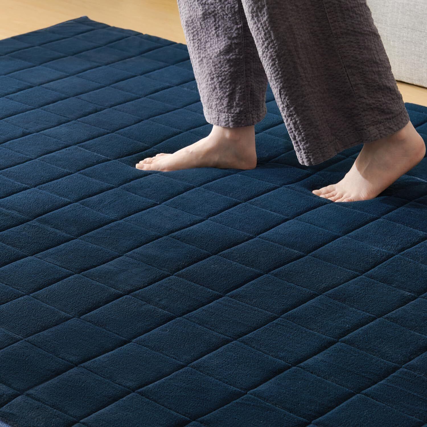 クモリ(Kumori) ラグ カーペット キルトラグ 135×185cm(約1.5畳) フランネル ラグマット 滑り止め付き 絨毯 ふわふわ肌触り もちもち 洗える オールシーズン 抗菌防臭 床暖房 ホットカーペット対応 無地 ネイビー