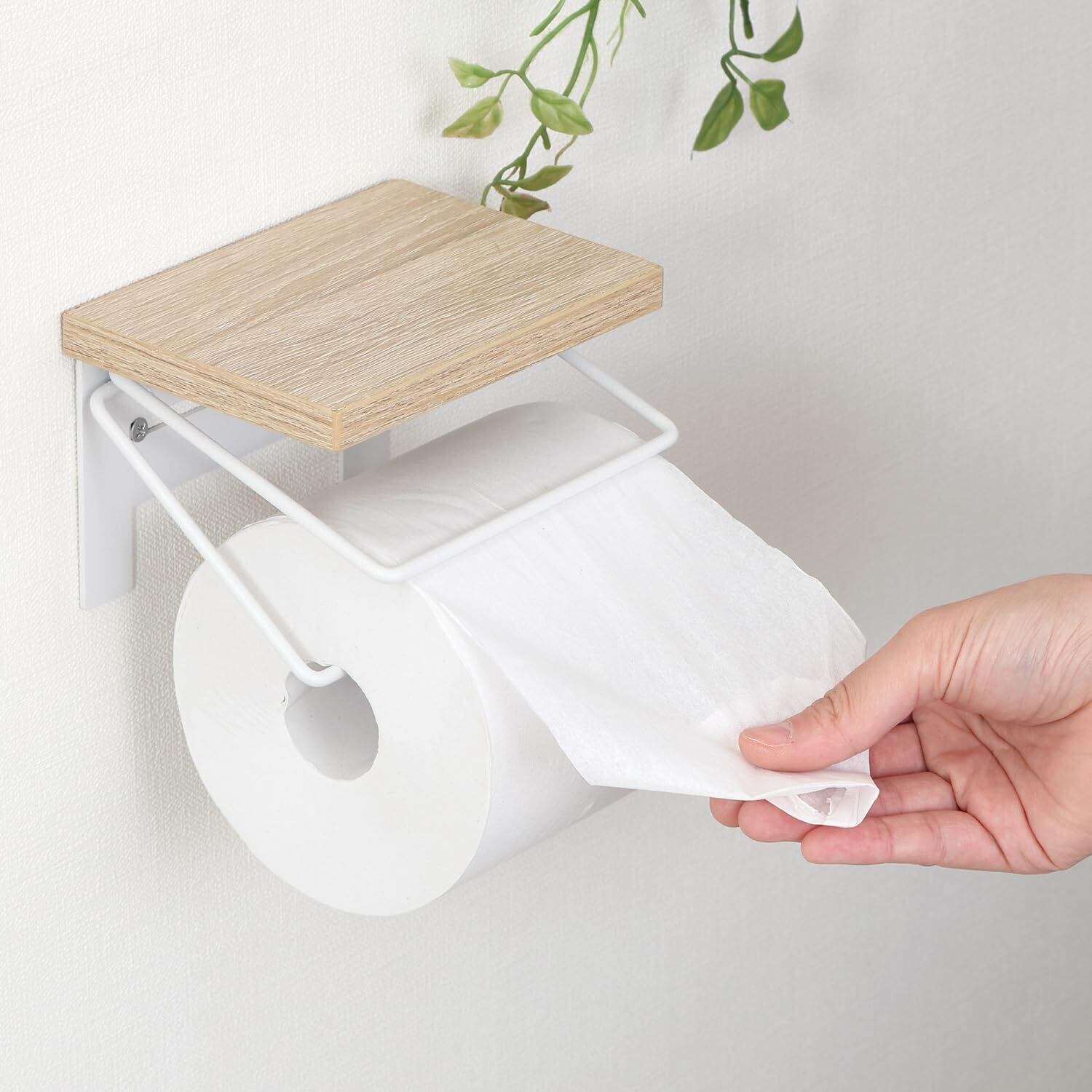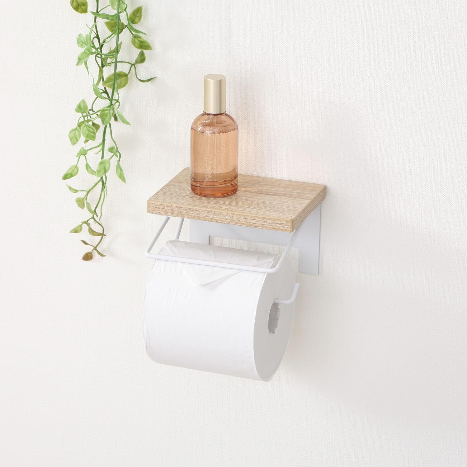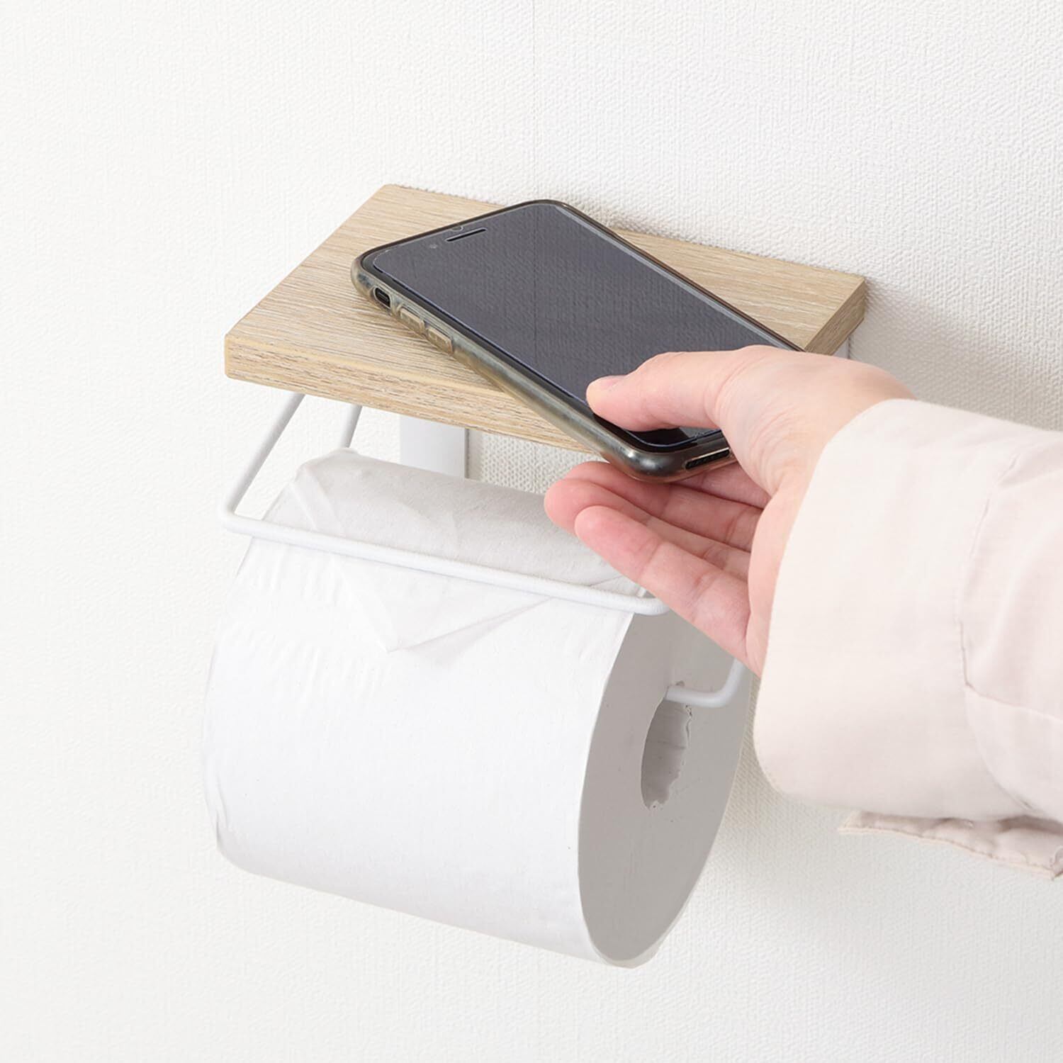 不二貿易 トイレットペーパーホルダー 1連 棚付き スマホ置き ストッパーつき 取り換えカンタン ナチュラル 38993