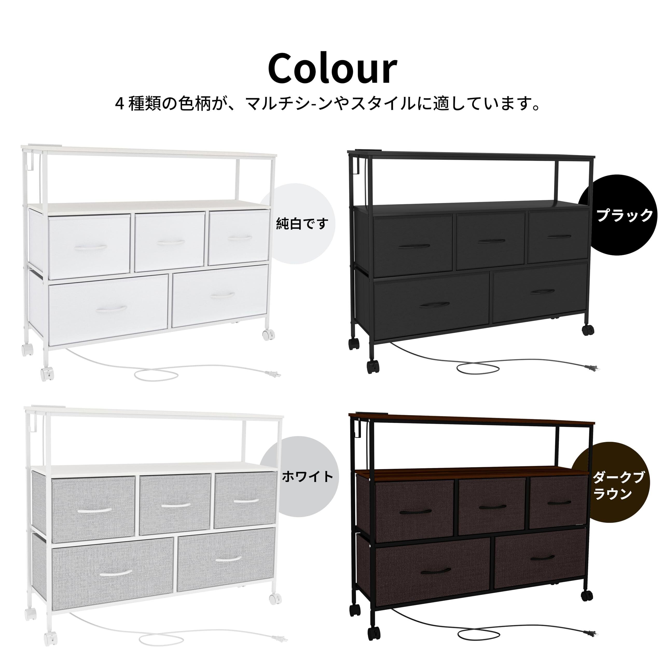 LunarLight チェスト タンス 幅100奥行30高さ78㎝ 収納チェスト 収納ケース 2口コンセント付き キャスター付き ストッパー付き 移動式と固定式2種類 テレビ台 頑丈 組立簡単 耐震転倒防止 大容量収納 引き出し2段5個 棚板2枚(ブラック)