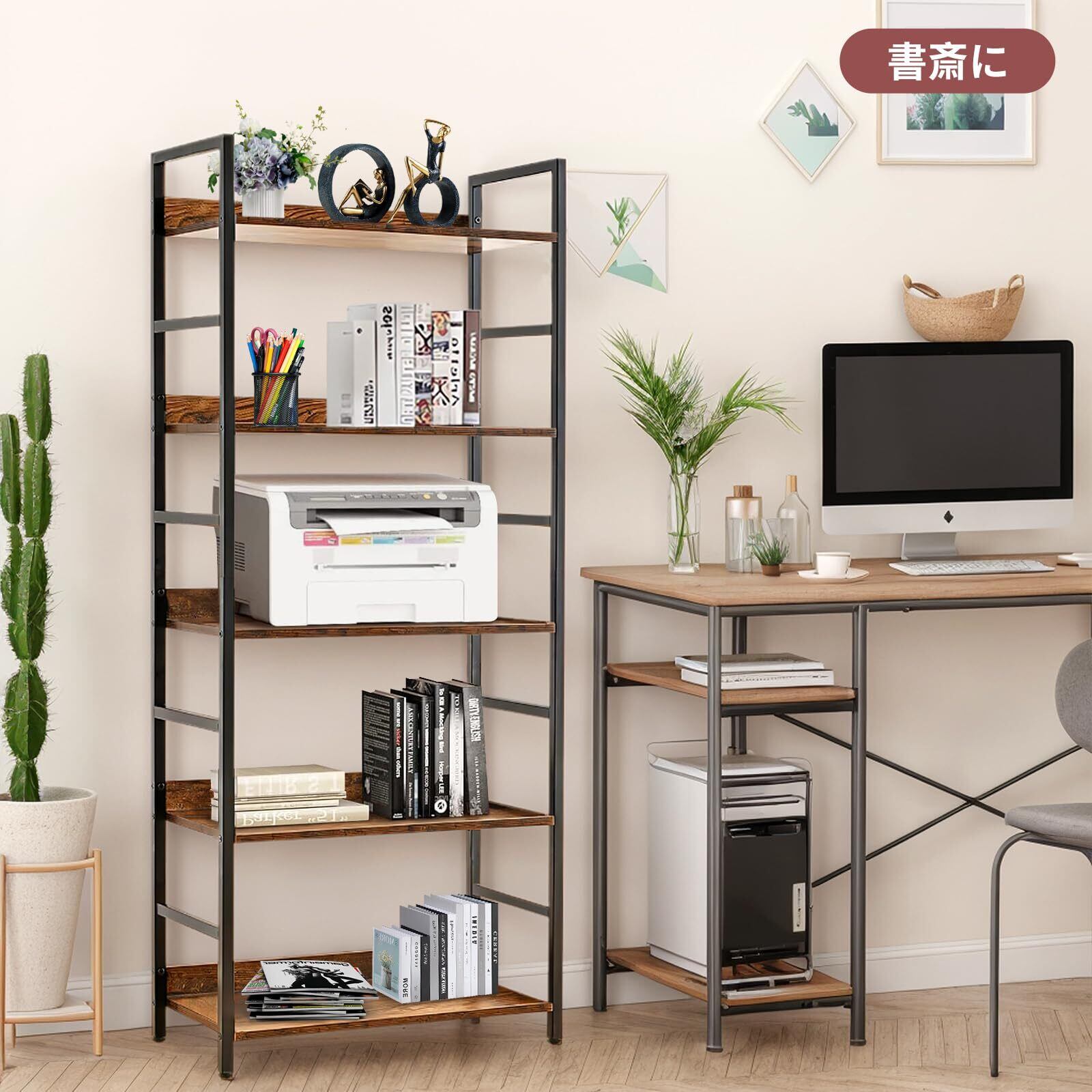 オープンシェルフ ラック 棚 本棚 おしゃれ 収納ラック 木製ラック スチールラック 食器棚 レンジラック キッチンラック (木目調, 5段)