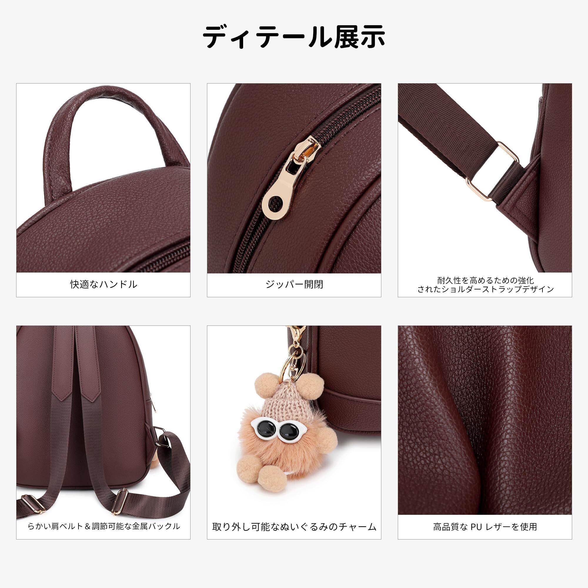 【ユニークな製品デザイン】このミニバックパックはカジュアルでファッショナブルなスタイルです。高品質でシンプルかつエレガントなデザインは、どんなファッションにも簡単に合わせられ、あらゆる年齢層の人々に人気があります。優れたPUレザーで作られており、肩ストラップは柔らかく調整可能で、長時間使用しても肩に負担をかけません。軽量で、耐摩耗性、耐久性、防汚性に優れ、簡単にお手入れできます。丁寧に縫製されたバックパックは長期間使用できます。シンプルなデザインで大容量の収納機能を備えたミニバックパックで、触り心地が柔らかく、とても美しく、シンプルな外観が女性の個性とセンスを即座に表現します。色のバリエーションも豊富で、可愛らしいぬいぐるみのチャームがついています。女性や女の子にぴったりで、年齢に関係なく使用できます。また、家族や友達へのギフトにも最適です。