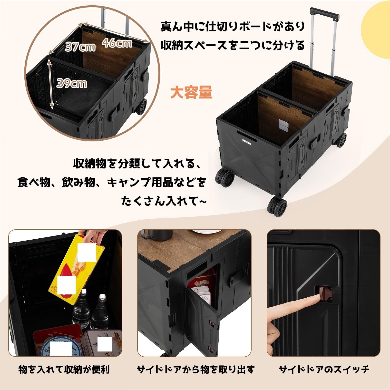 キャリーワゴン キャンプカート 大型 テーブルとも使える アウトドアワゴン 大容量 折りたたみ キャスター付き 耐荷重60kg アウトドア キャンプ ピクニック 釣り 花見 運動会 (ブラック)