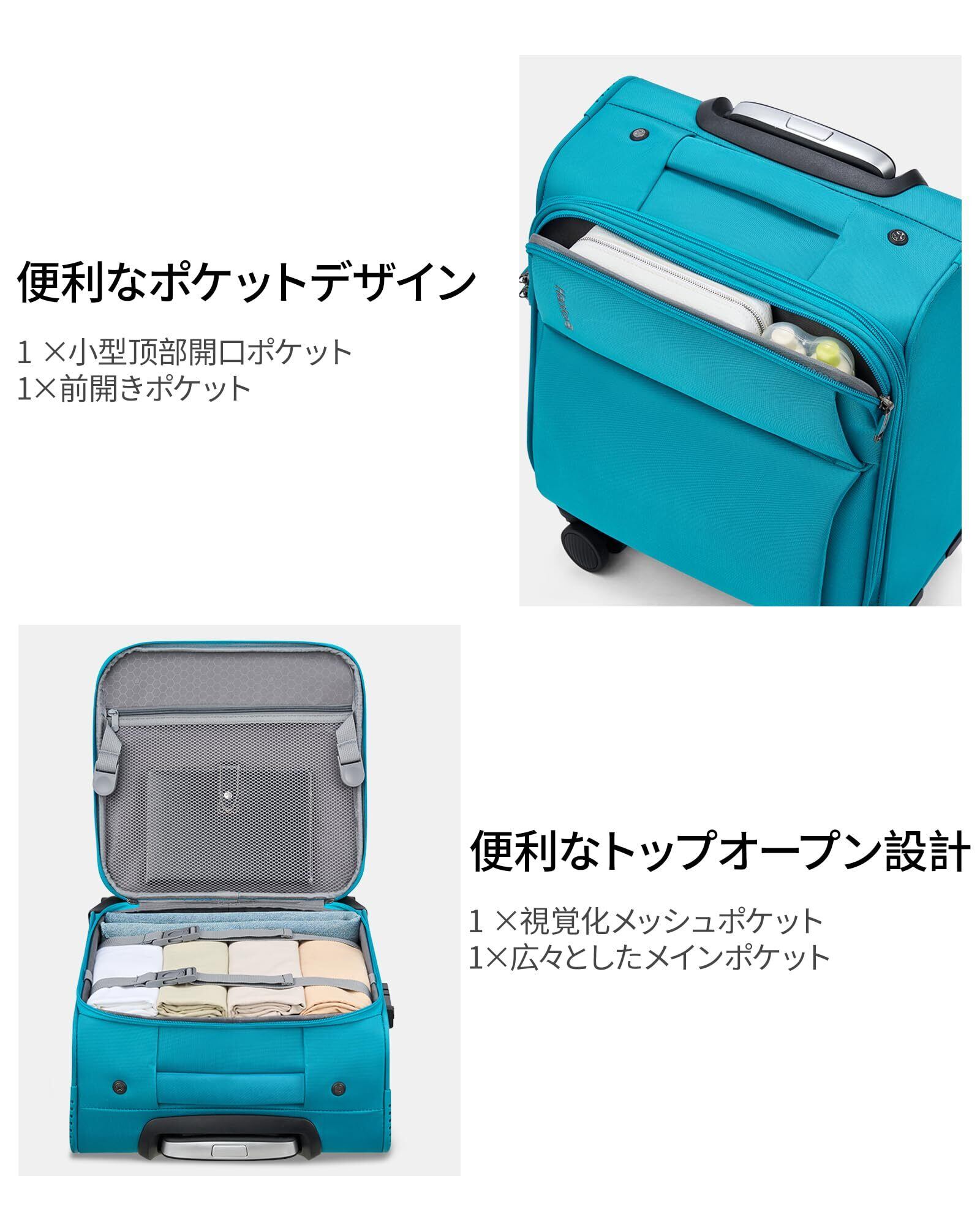 スーツケース 機内持ち込み布製キャリーケース 小型SS サイズTSA ロック付き キャスター 360° 回転 スーツケース 機内持ち込み 軽量大容量キャリーケース旅行 出張(マリンブルー,機内持込/30L)