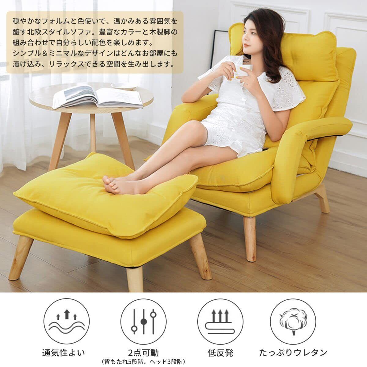 1人掛けソファー 一人用ソファー 肘付き ハイバック リクライニング(5段階) ソファベッド カウチ 高座椅子 ルームチェア リクライニングチェア オットマン付き 天然木脚 低反発 コンパクト 一人暮らし 新生活 取り外し可能なカバー