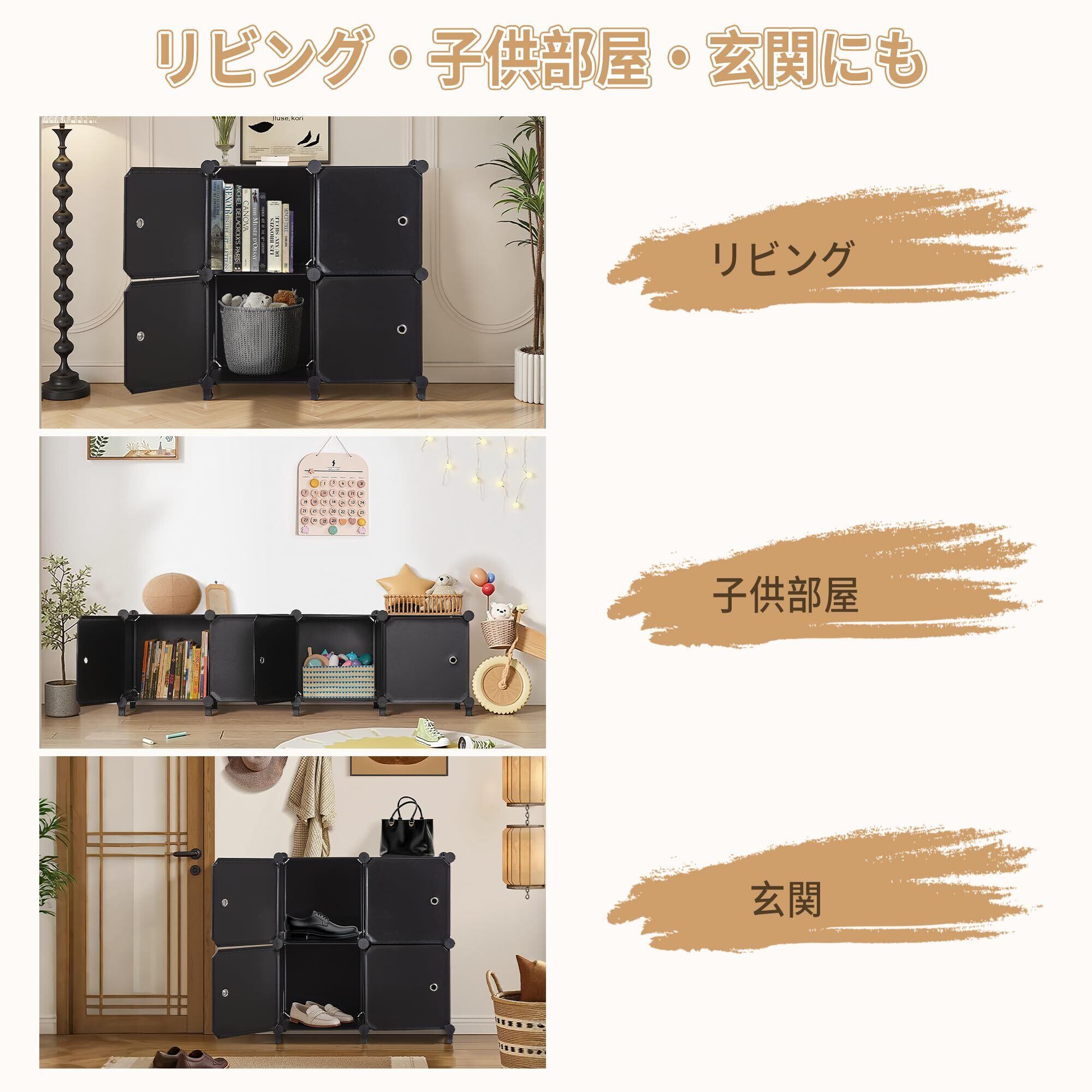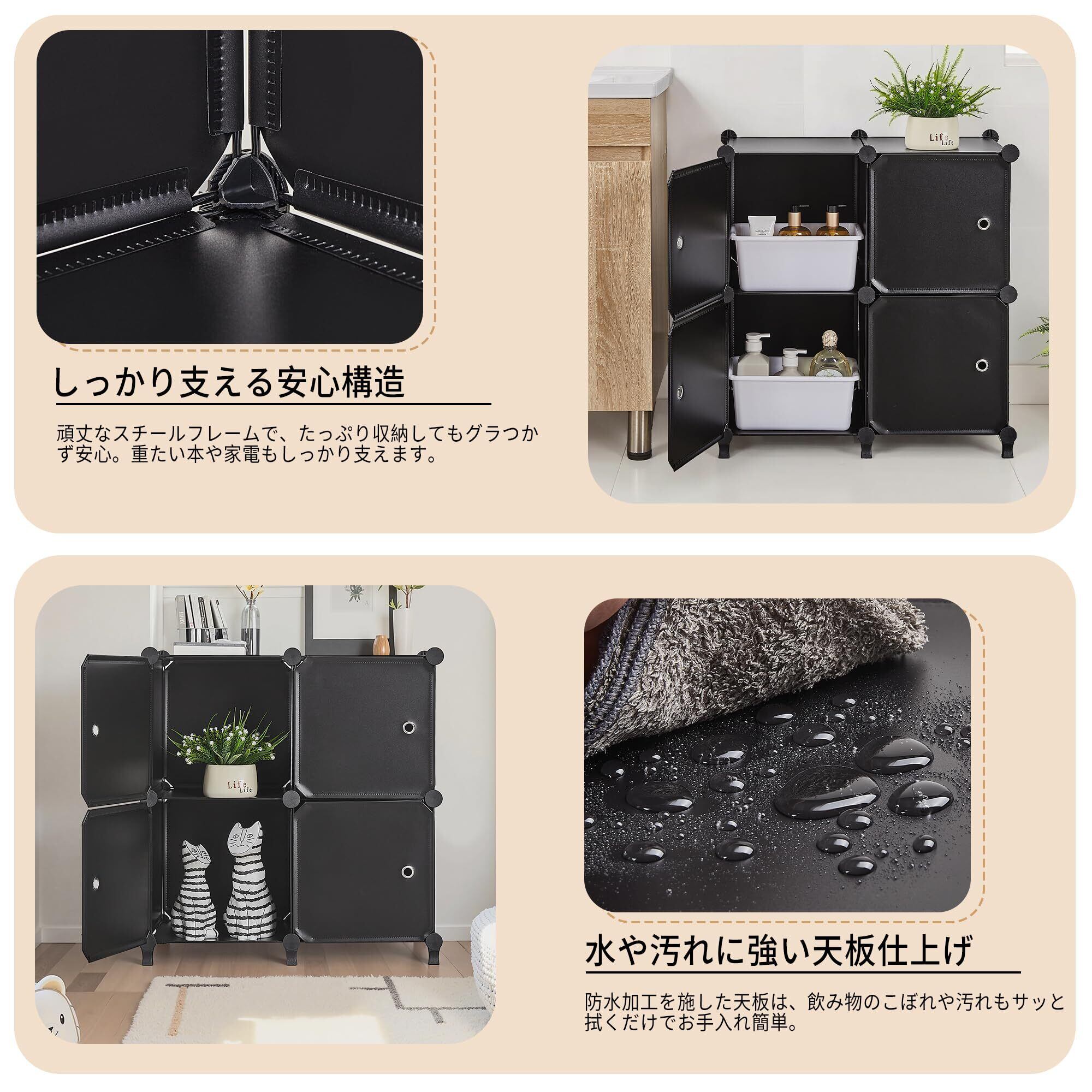VECELO 収納ラック 扉付き 4ボックス ブラック 幅65×奥行32×高さ68cm 2.9kg|配線・小物を隠して収納 スタイリッシュ×目隠し機能 デスク下やリビングにフィット