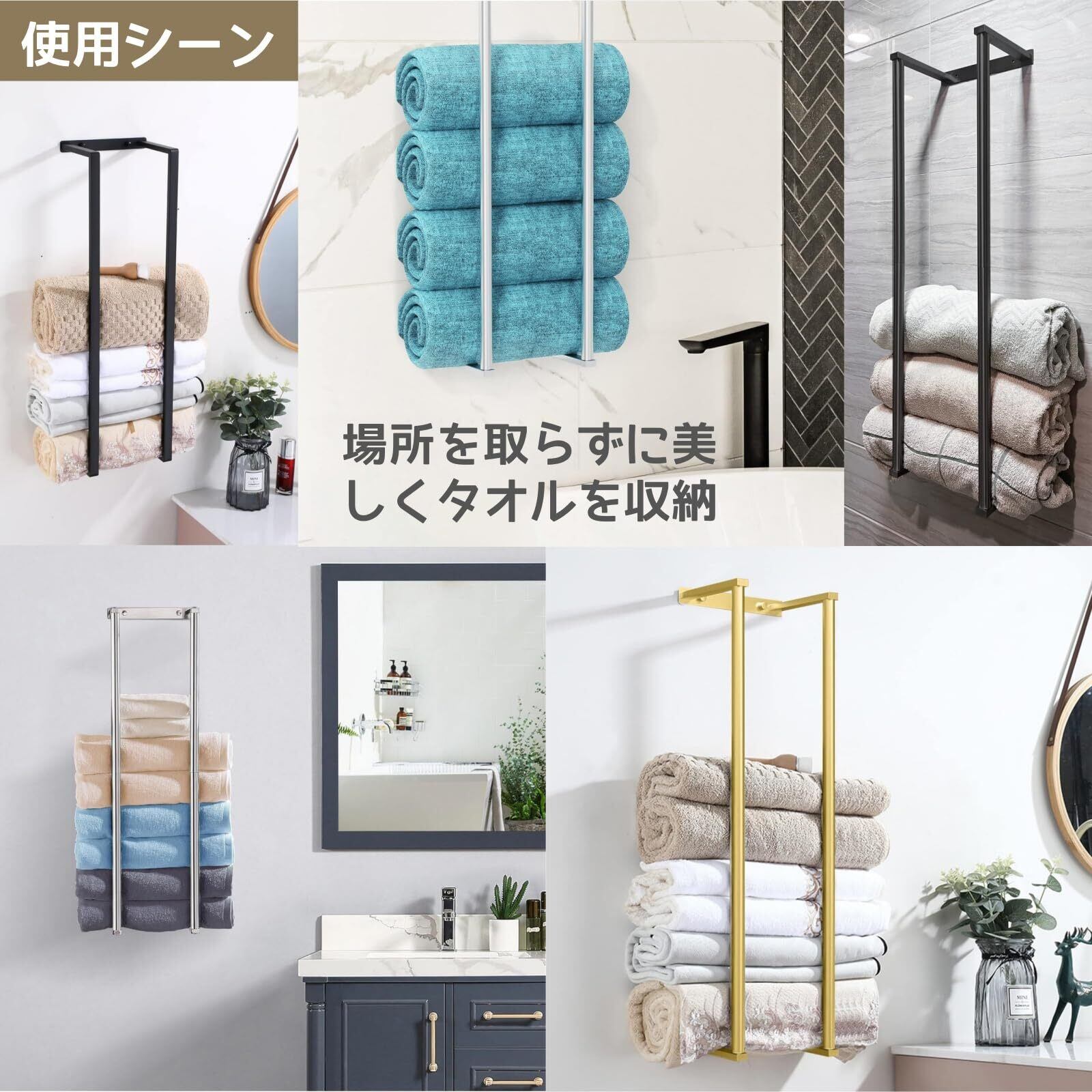 【幅広い用途】このタオル掛け 壁取り付けは省スペースで、バスルームのスペースを取りすぎず、タオル、バスタオル、ヨガタオルなどを収納できます。バスルーム、ホテル、サロン、ランドリールームなどの場所に適しています。