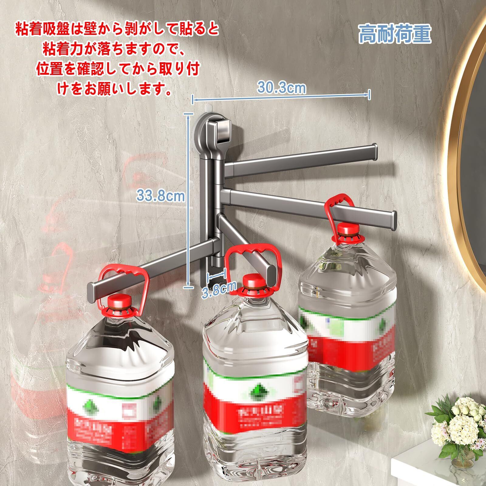 【取り付けが簡単】のタオル掛けは工具やネジを使わずに壁に穴を開ける必要なく、強力粘着吸盤で壁に貼り付けて壁を傷つけません。強力な粘着吸盤なので、落ちる心配がありません。(ご注意:タイル、ガラス、木製の壁、金属など、ほとんどのツルツルな壁に対応できますが、粗すぎる表面には適用していません。)